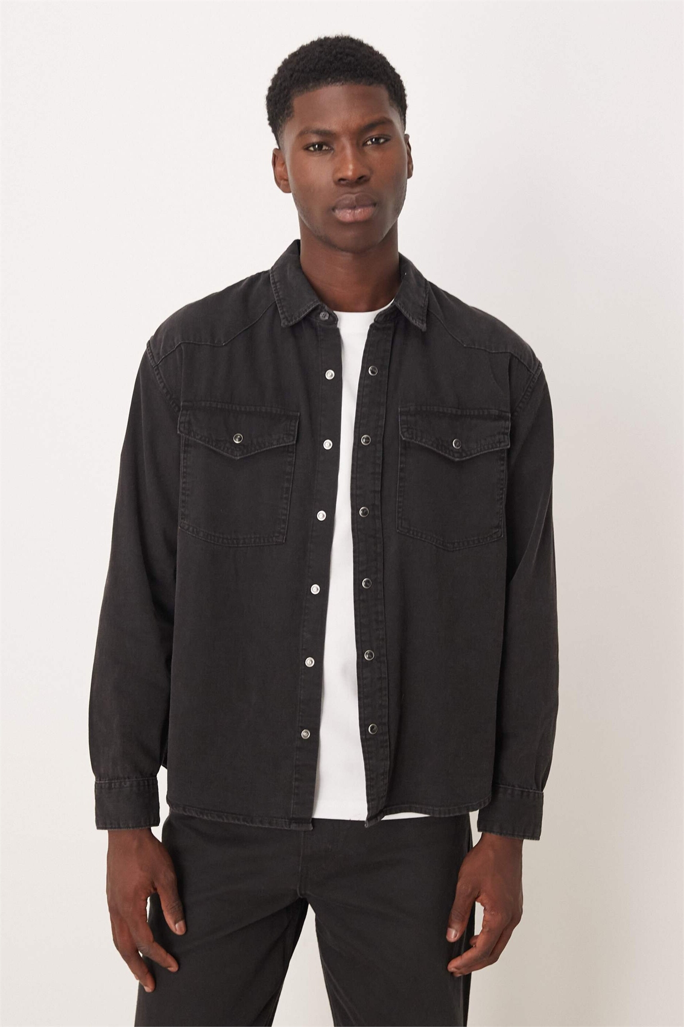 Неэластичный деним: черная стирка Основной материал: 100% хлопок.