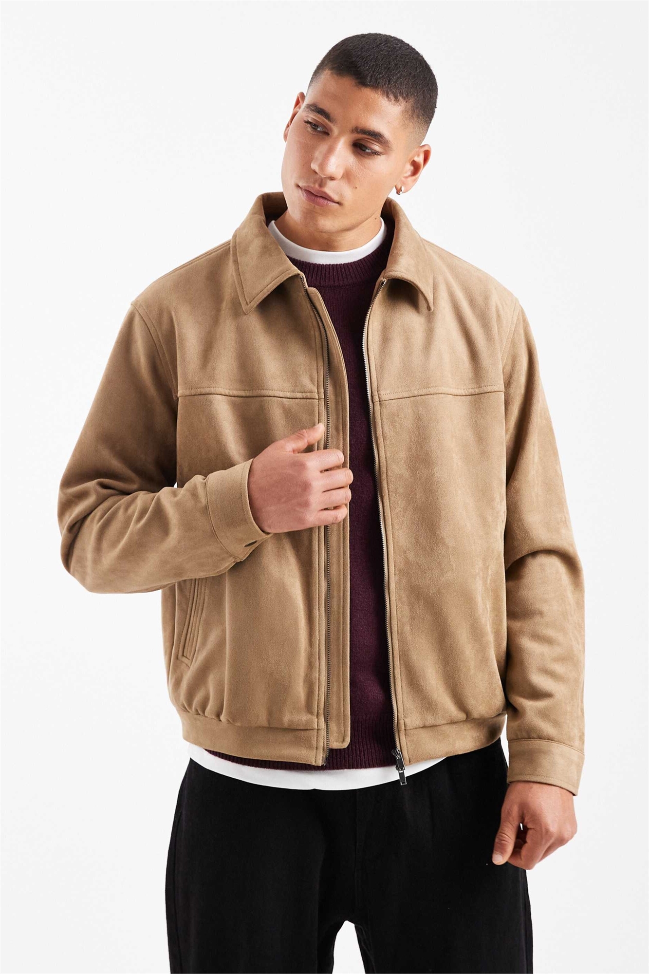 Куртка из искусственной замши цвета средне-коричневого