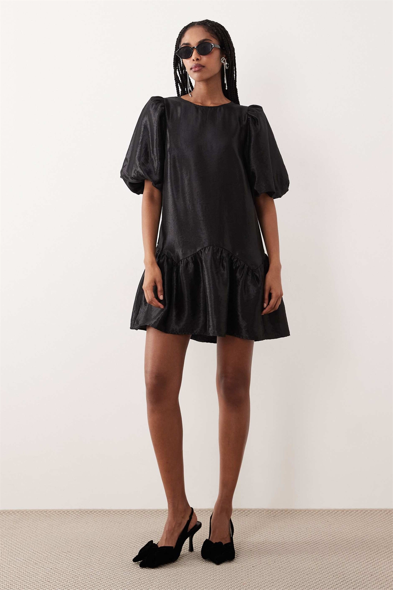 Мини-платье с короткими рукавами, объемным верхом и баской