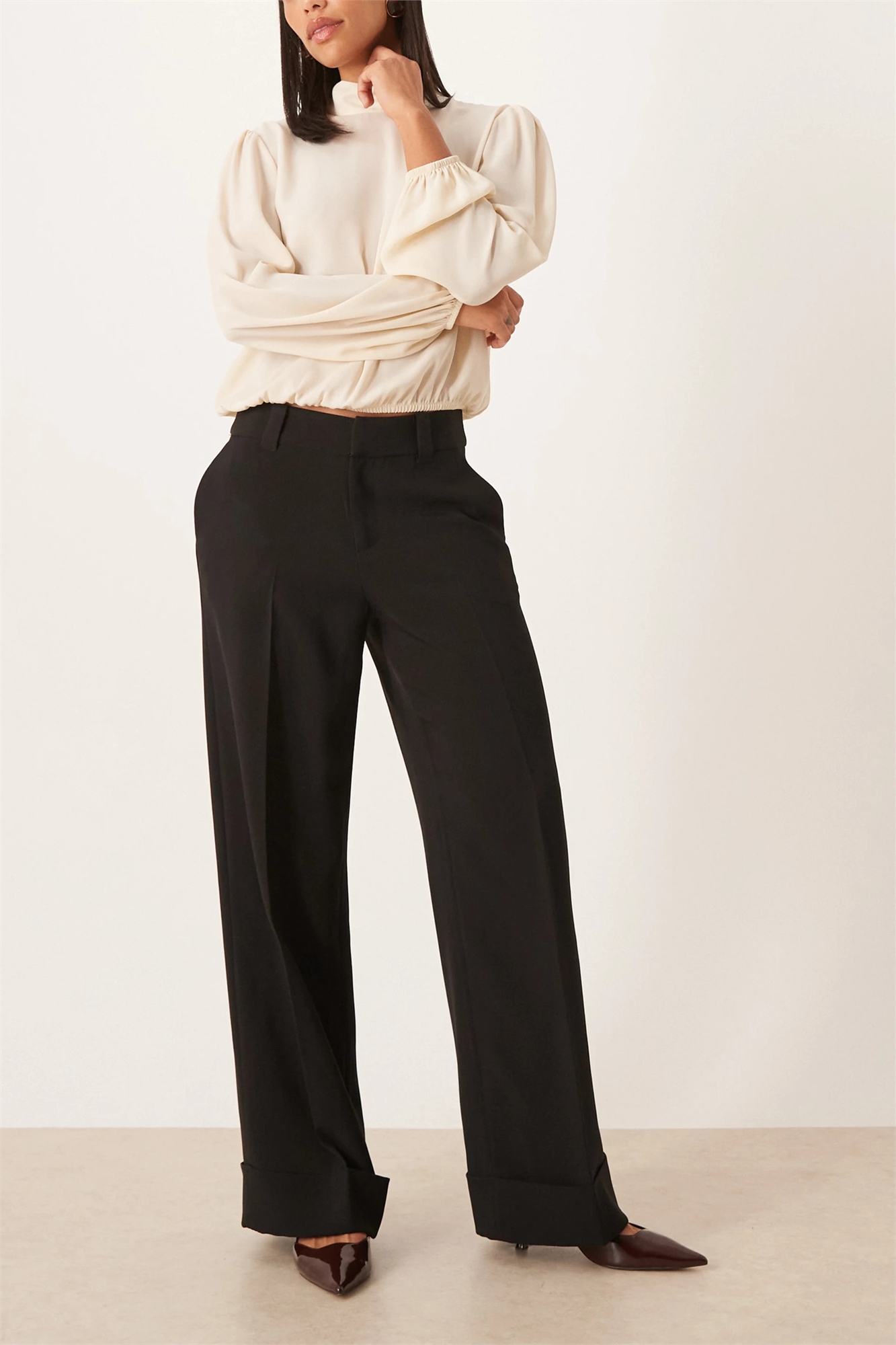 Брюки с завышенной талией и широкими брючинами