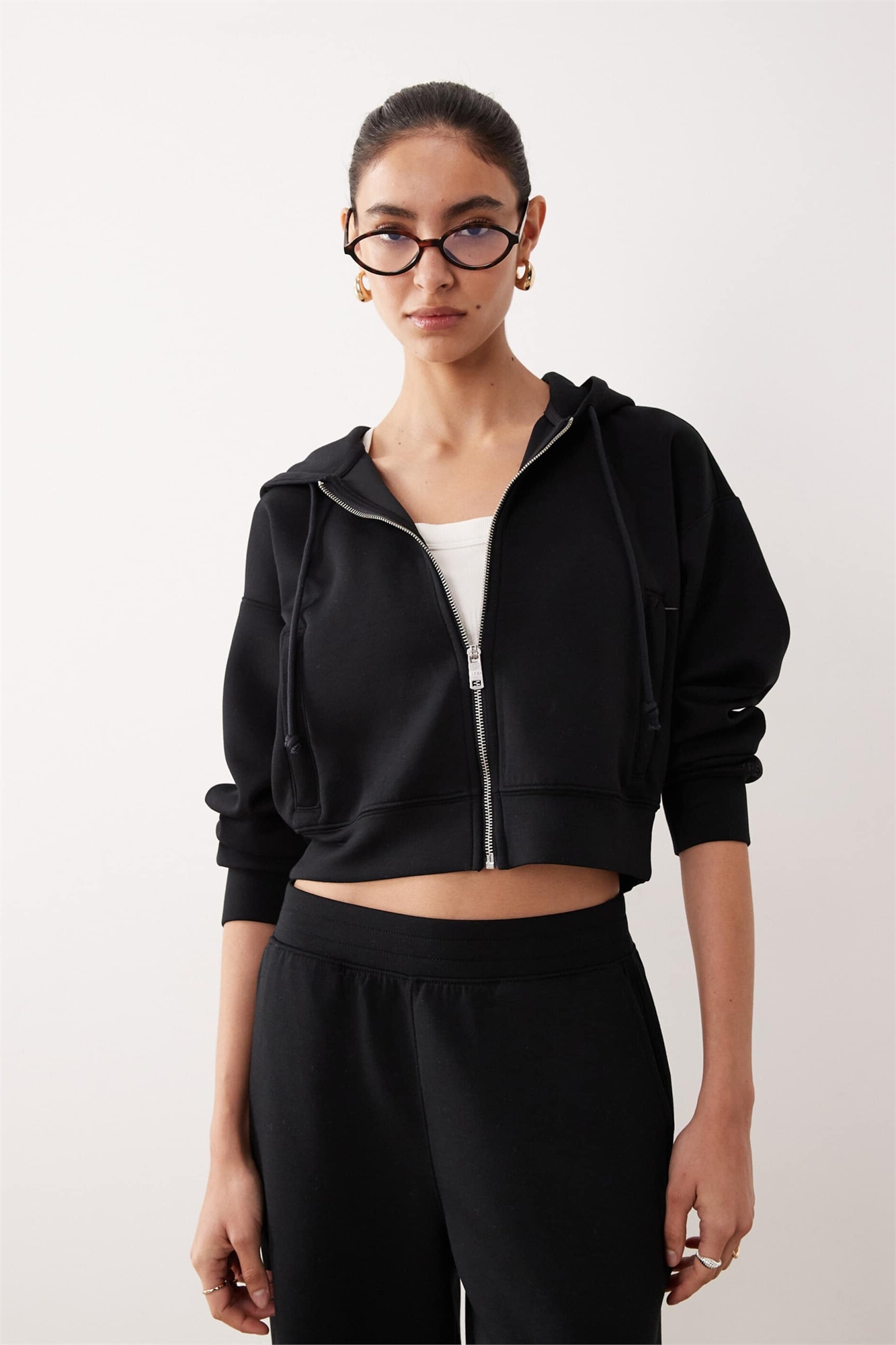 Укороченная флисовая толстовка с капюшоном и полной застежкой-молнией от YPB co-ord