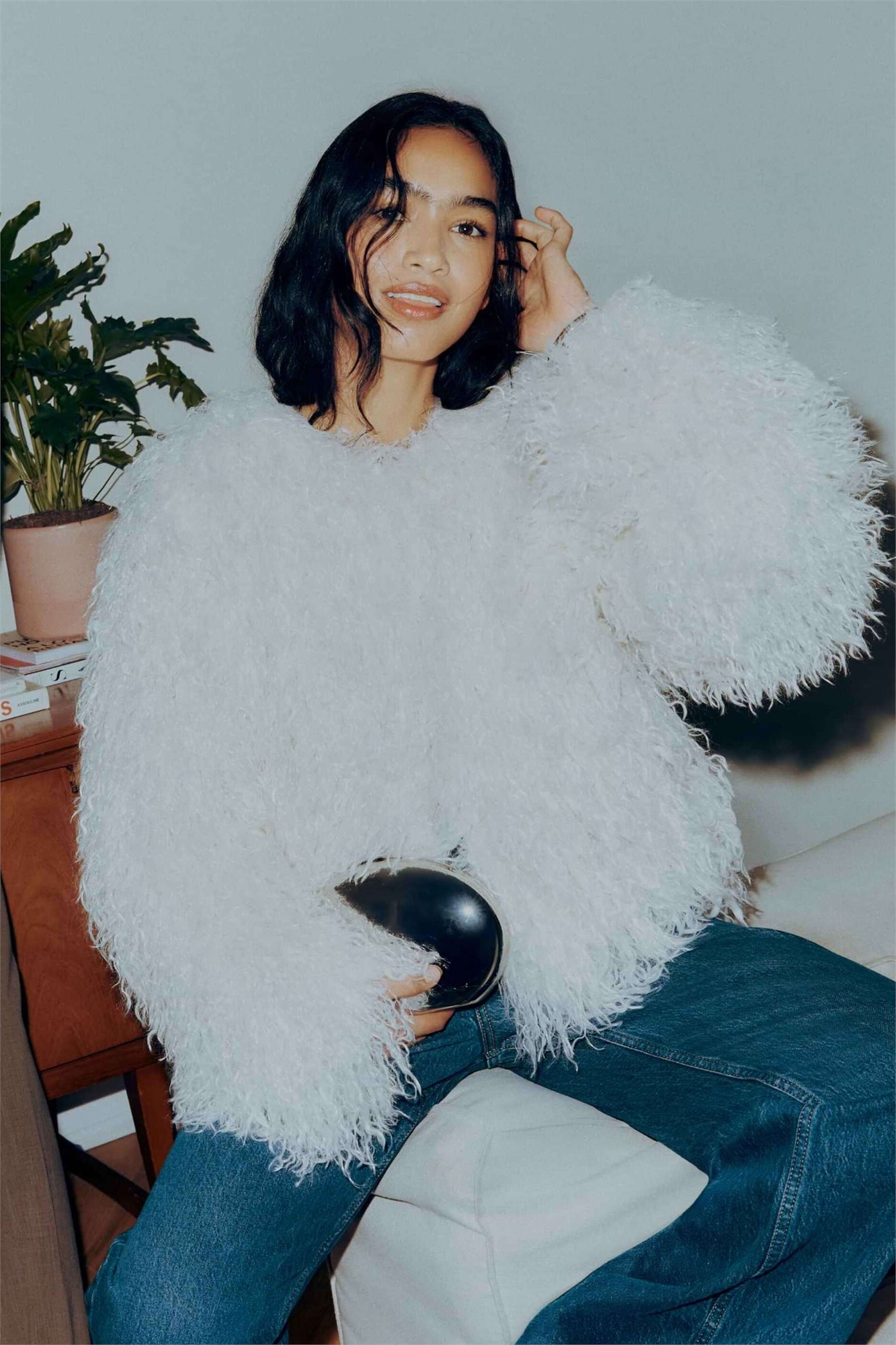 Короткая куртка из искусственного меха без воротника