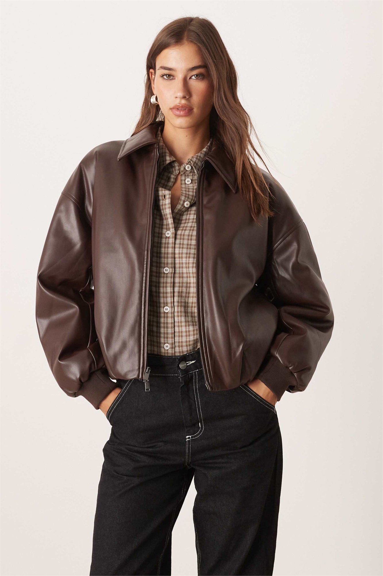 Бомбер из веганской кожи с волнистым подолом