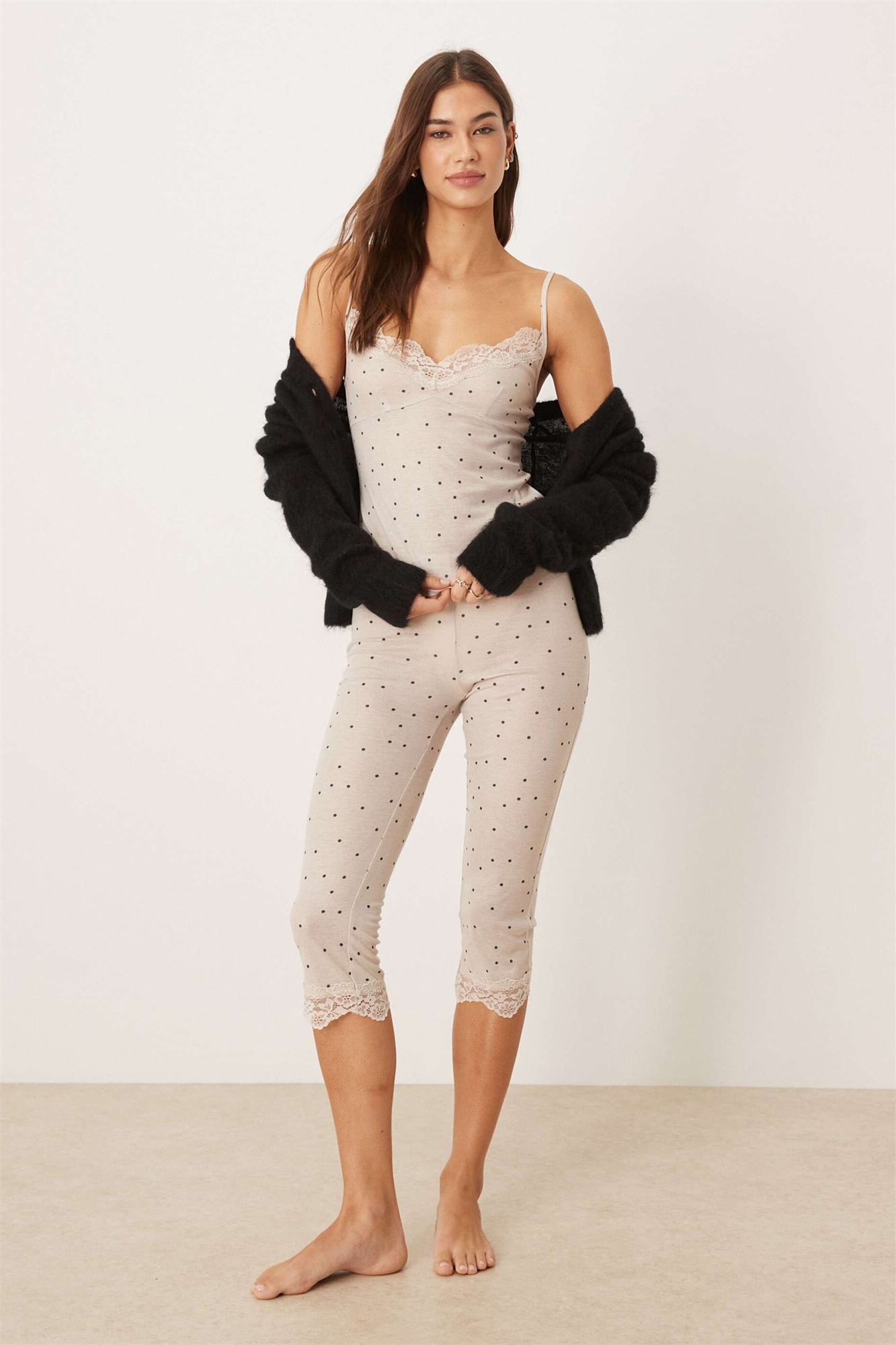 Пижама-капри с медовым оттенком, в горошек и с кружевной отделкой
