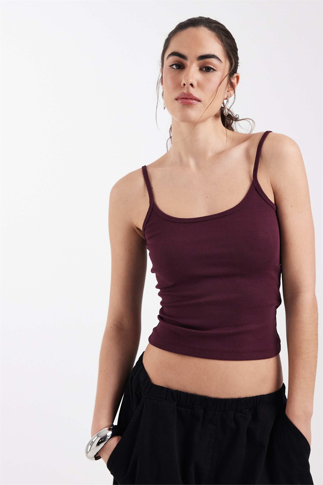 Топ с круглым вырезом и эластичными бретелями