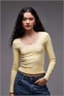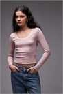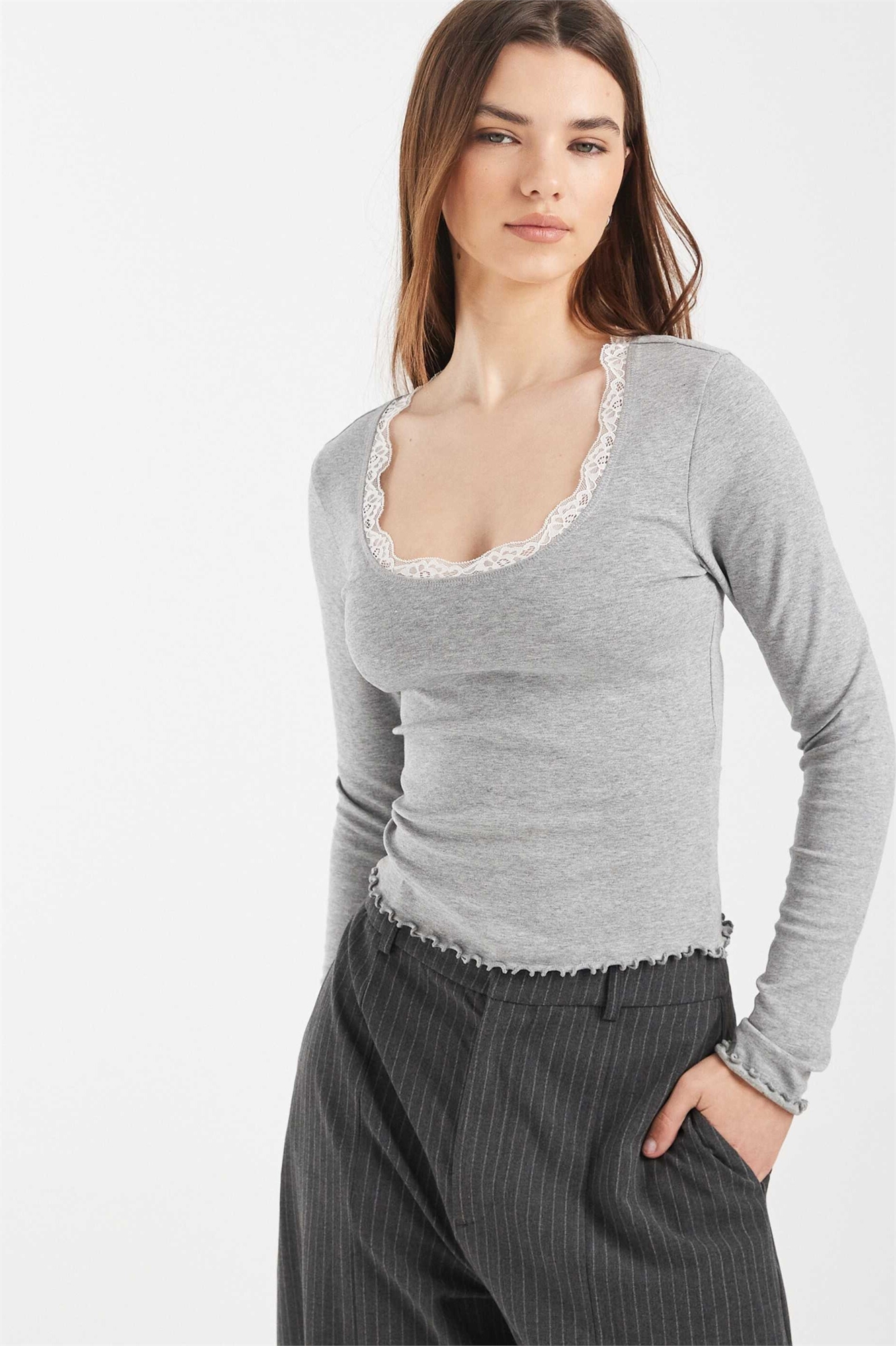 Топ с круглым вырезом и длинными рукавами, украшенный контрастным кружевом