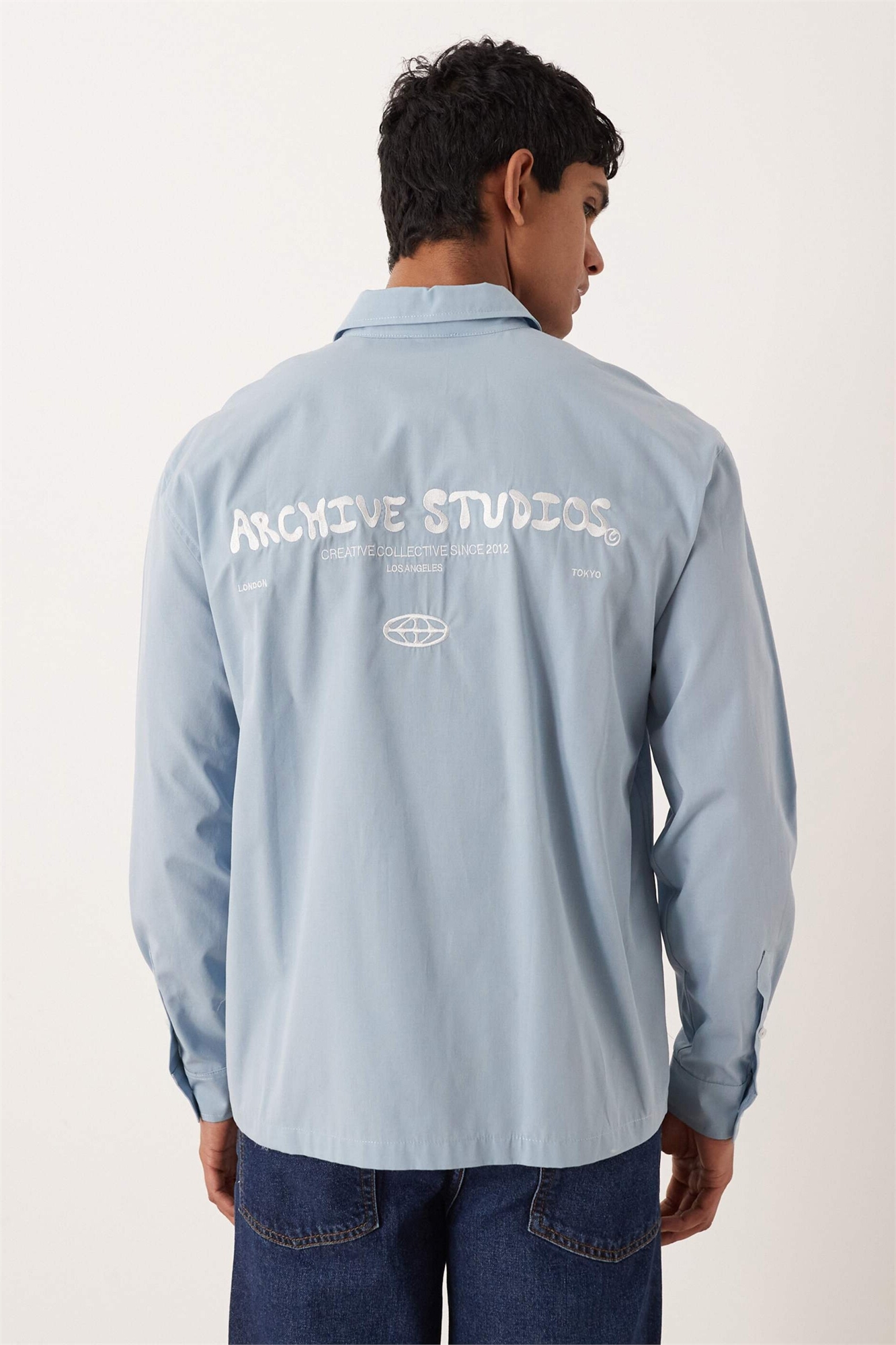 Рубашка свободного кроя с вышивкой на груди и спине