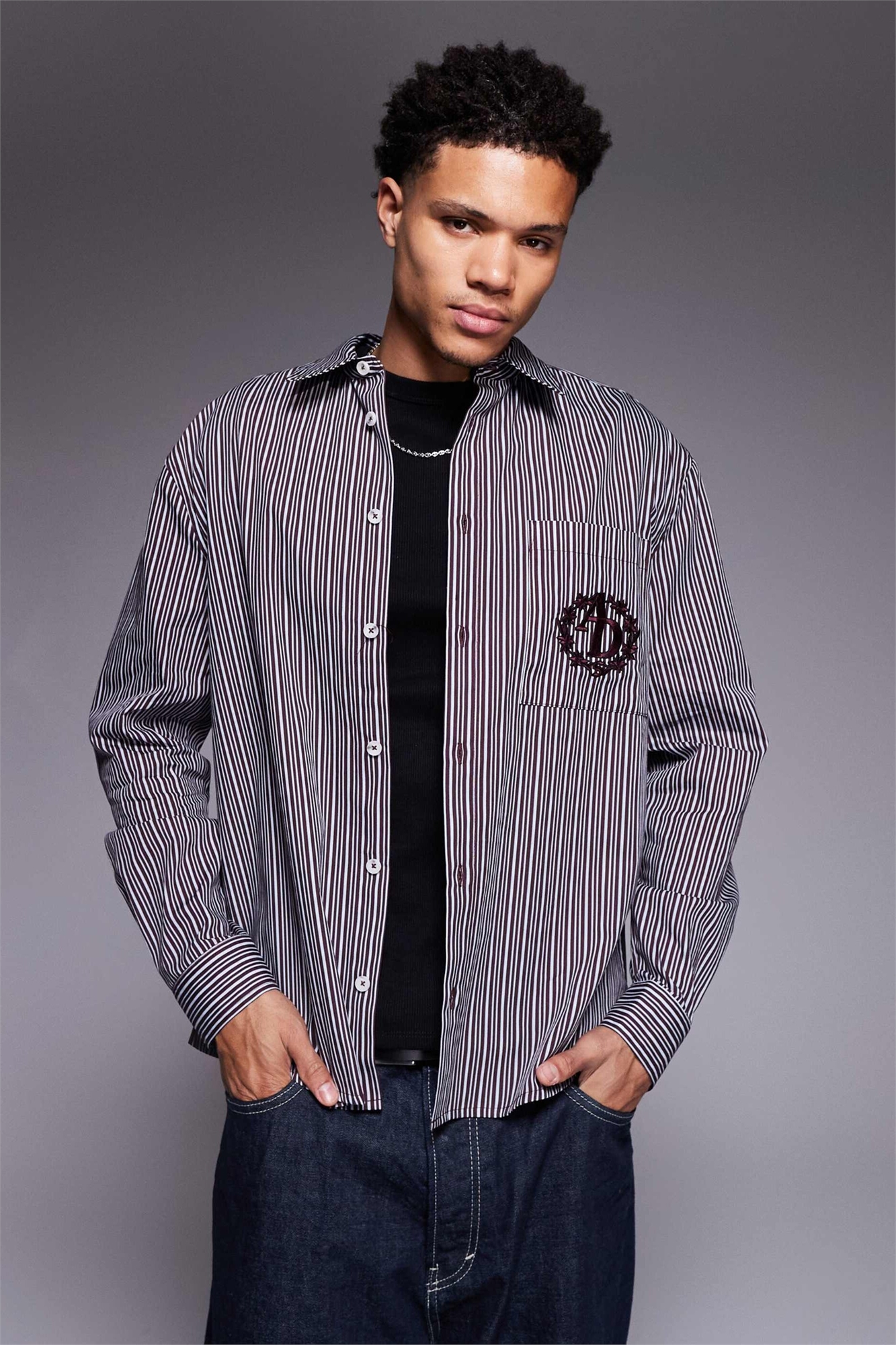 Рубашка свободного кроя в полоску с вышивкой на груди