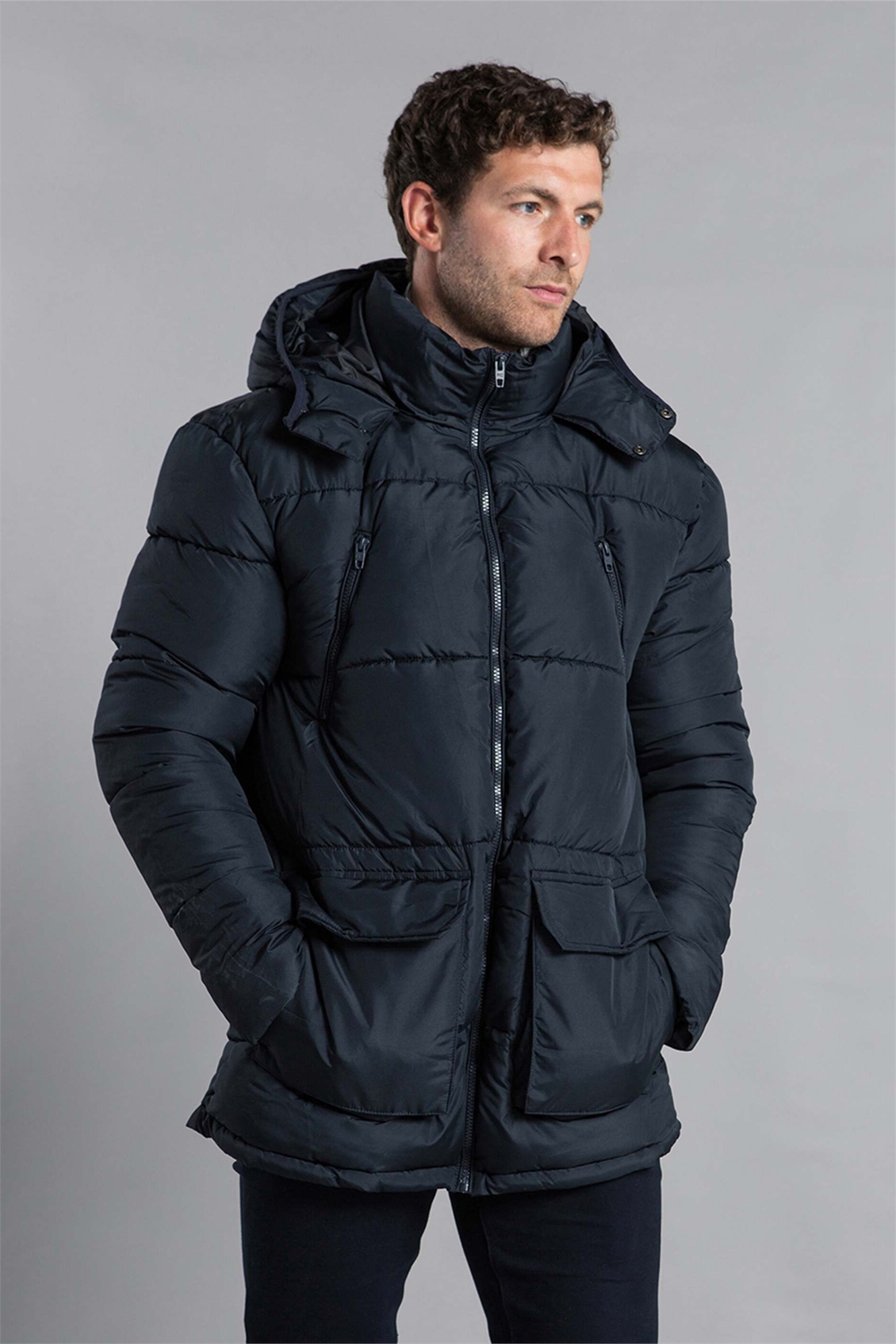 Длинная куртка-парка с капюшоном и утеплителем, темно-синего цвета
