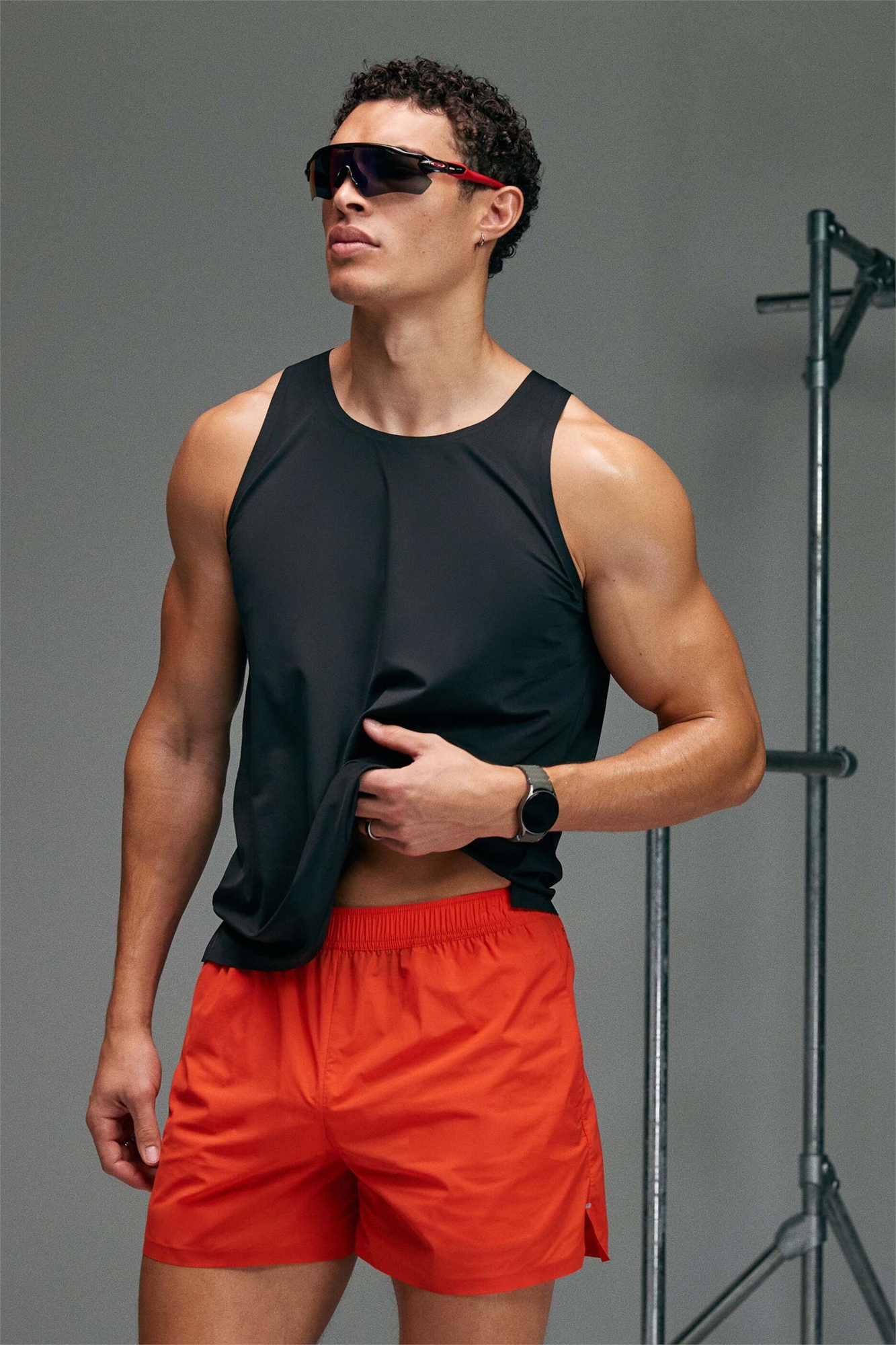 Спортивная одежда: гладкая и эластичная ткань. Состав: 89% полиамид, 11% эластан.