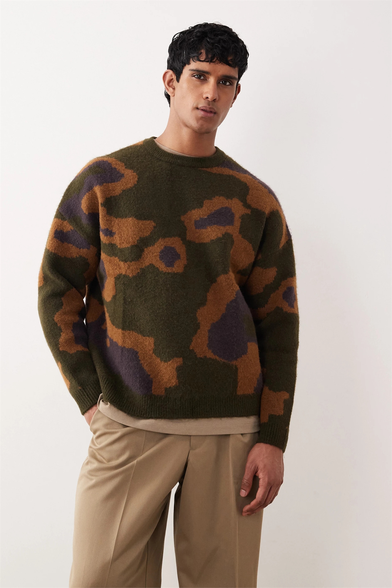 Свитер большого размера из трикотажа с ворсистой поверхностью и абстрактным принтом