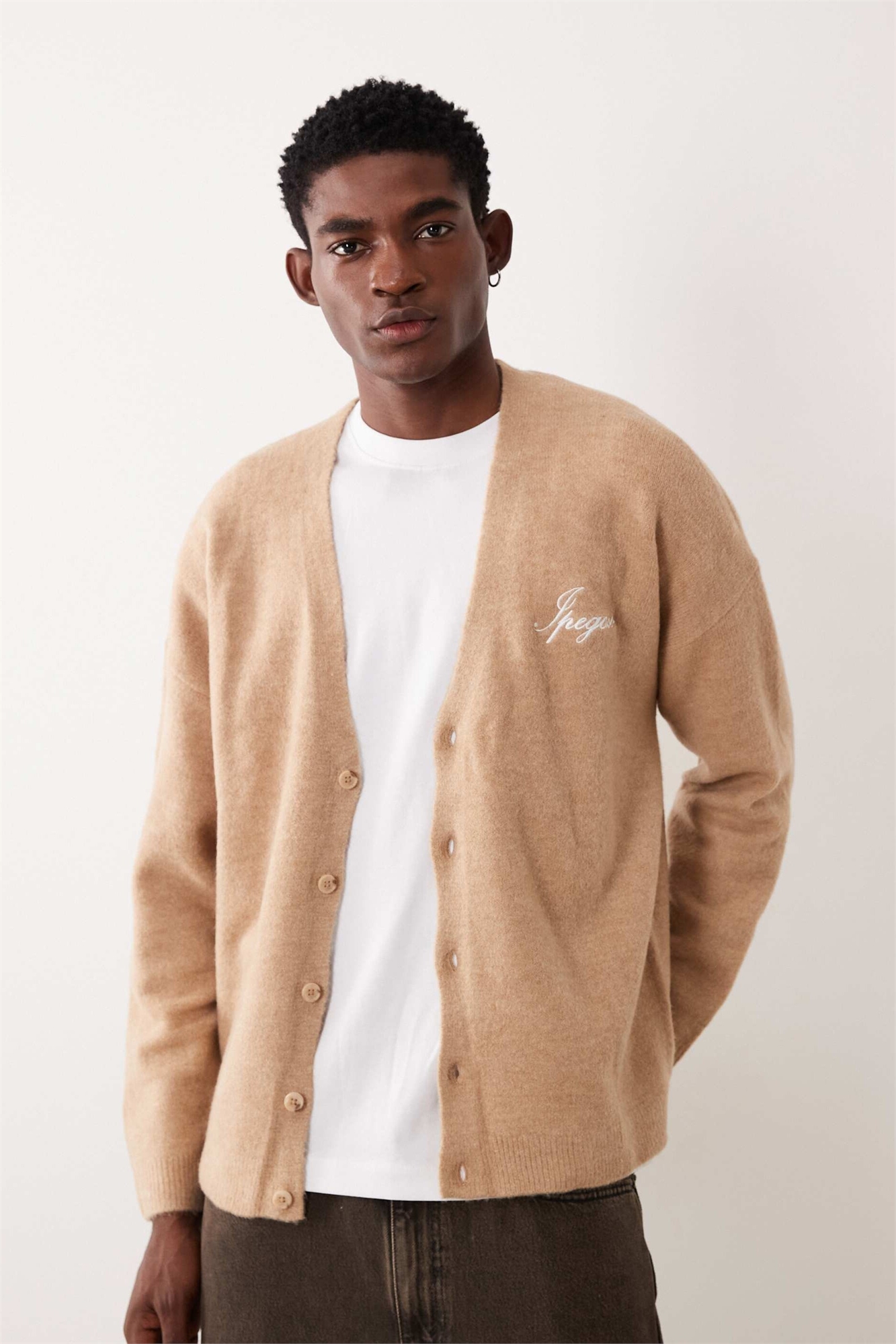 Вязаный кардиган свободного кроя с V-образным вырезом и вышивкой Ipegaso