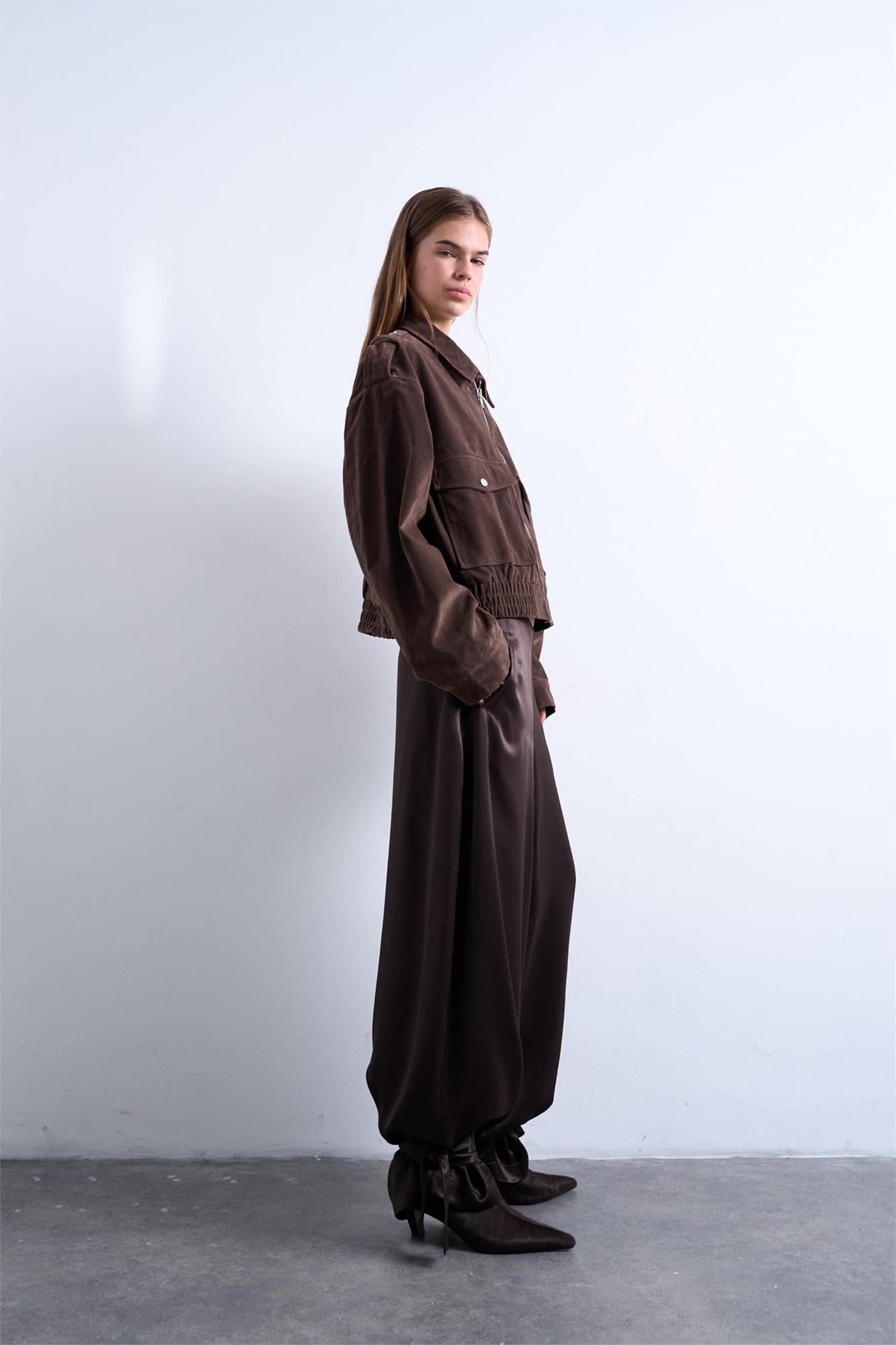 Брюки-балоны с высокой талией, атласными манжетами