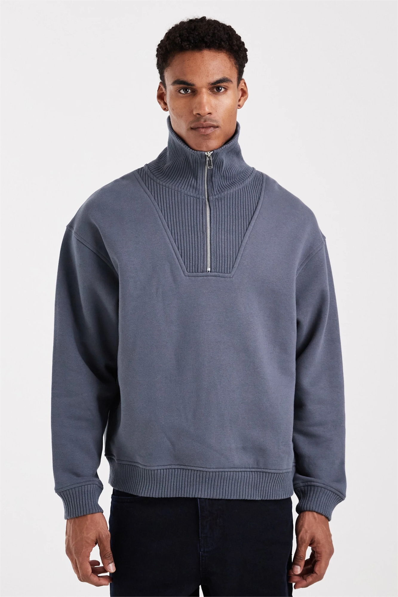 Свитшот с воротником-воронкой и полузастежкой-молнией