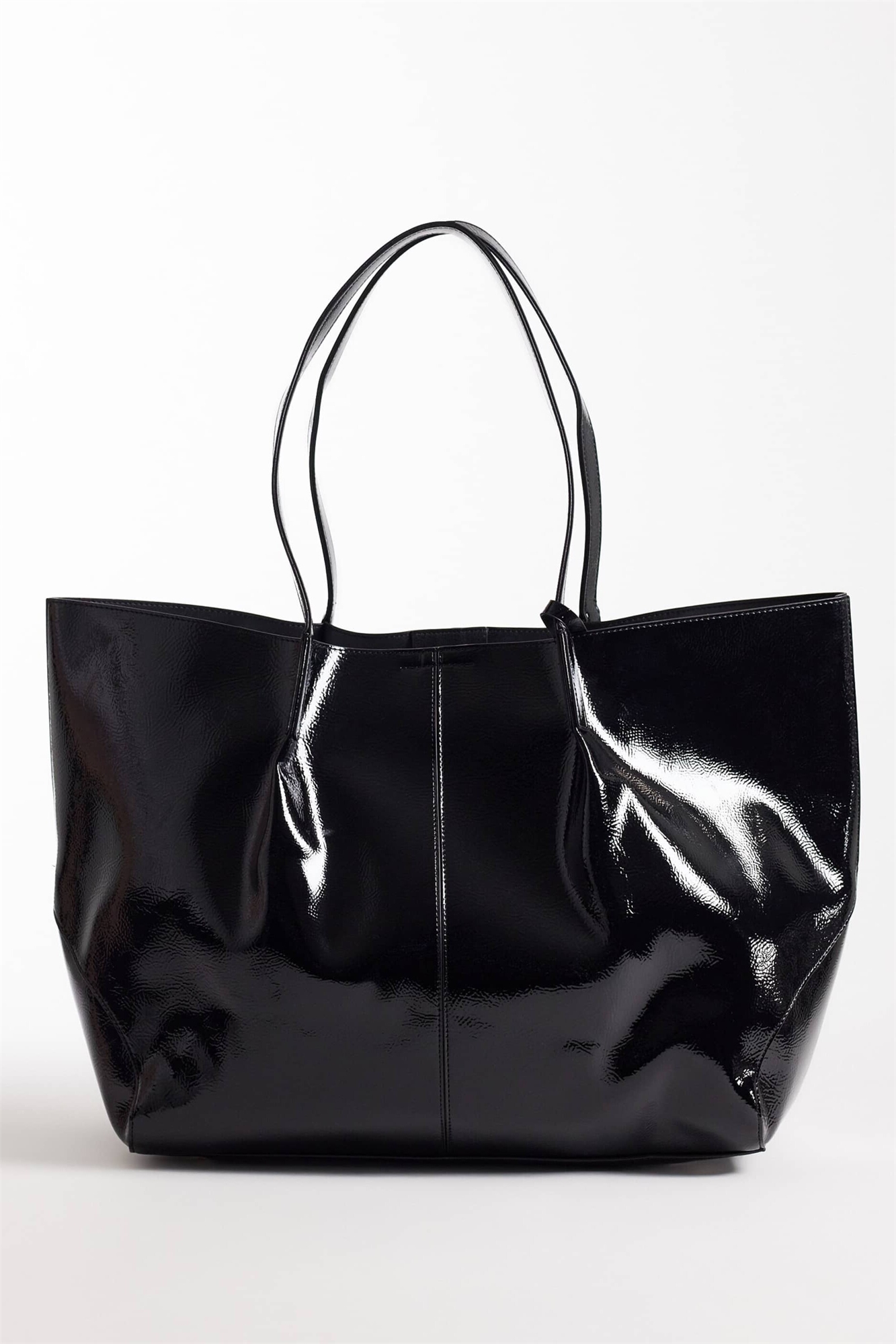 Объемная сумка из лакированной кожи с кармашком на молнии