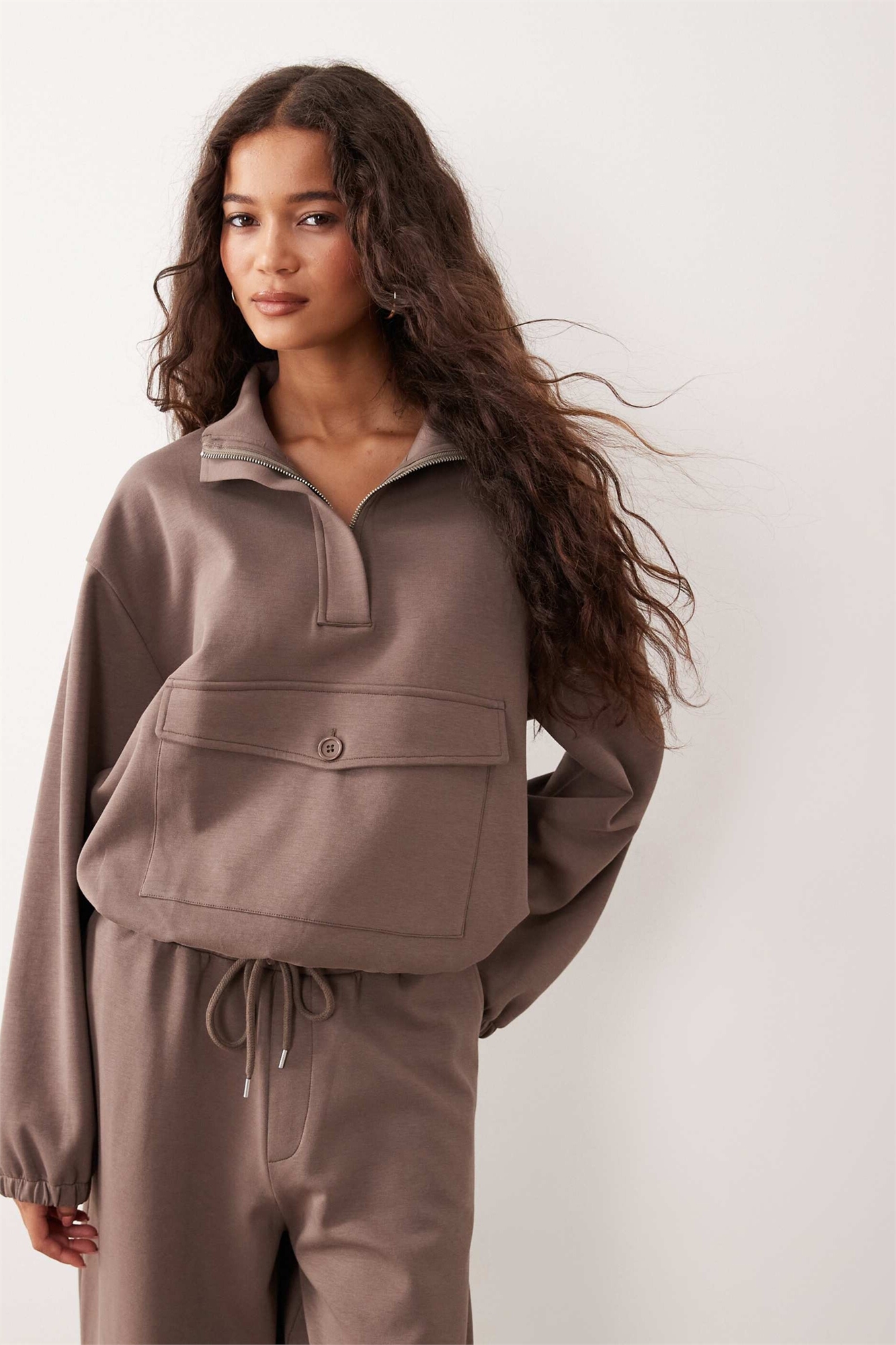 Свитере с полузастежкой-молнией и экстремальным воротником-воронкой в цвете кофе