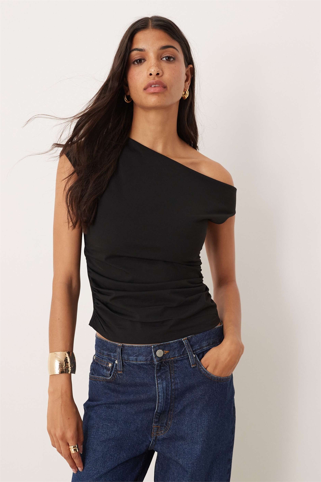 Топ с открытыми плечами и рюшами