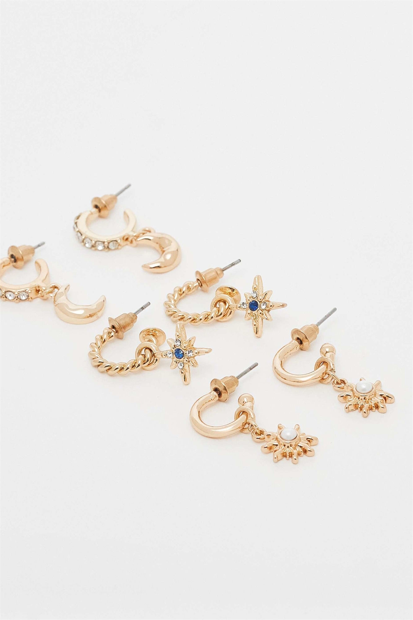 Набор из 3-х сережек-колец с подвесками в виде небесных тел и жемчугом
