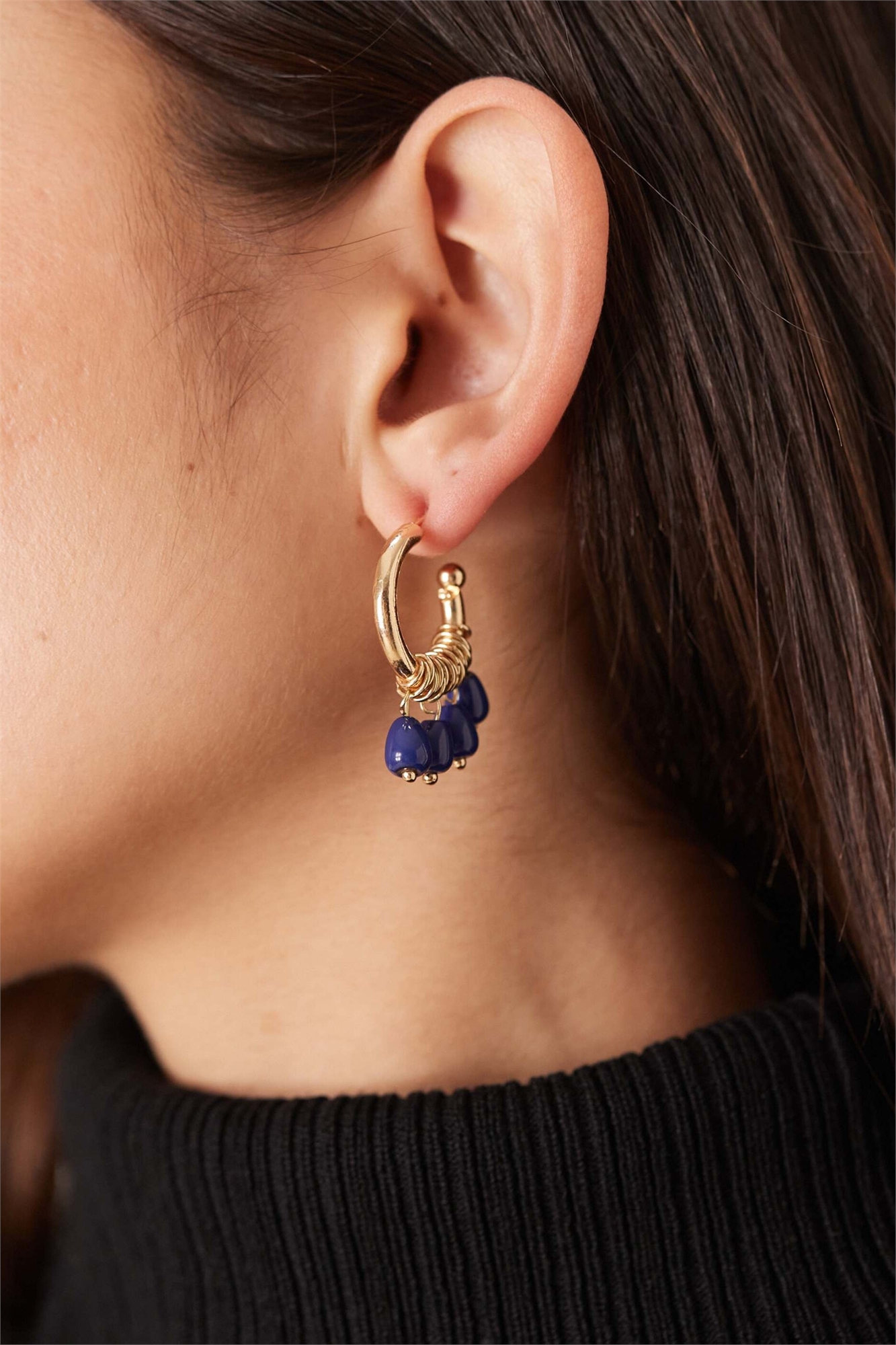 Серьги-кольца с бусинами цвета сиенны