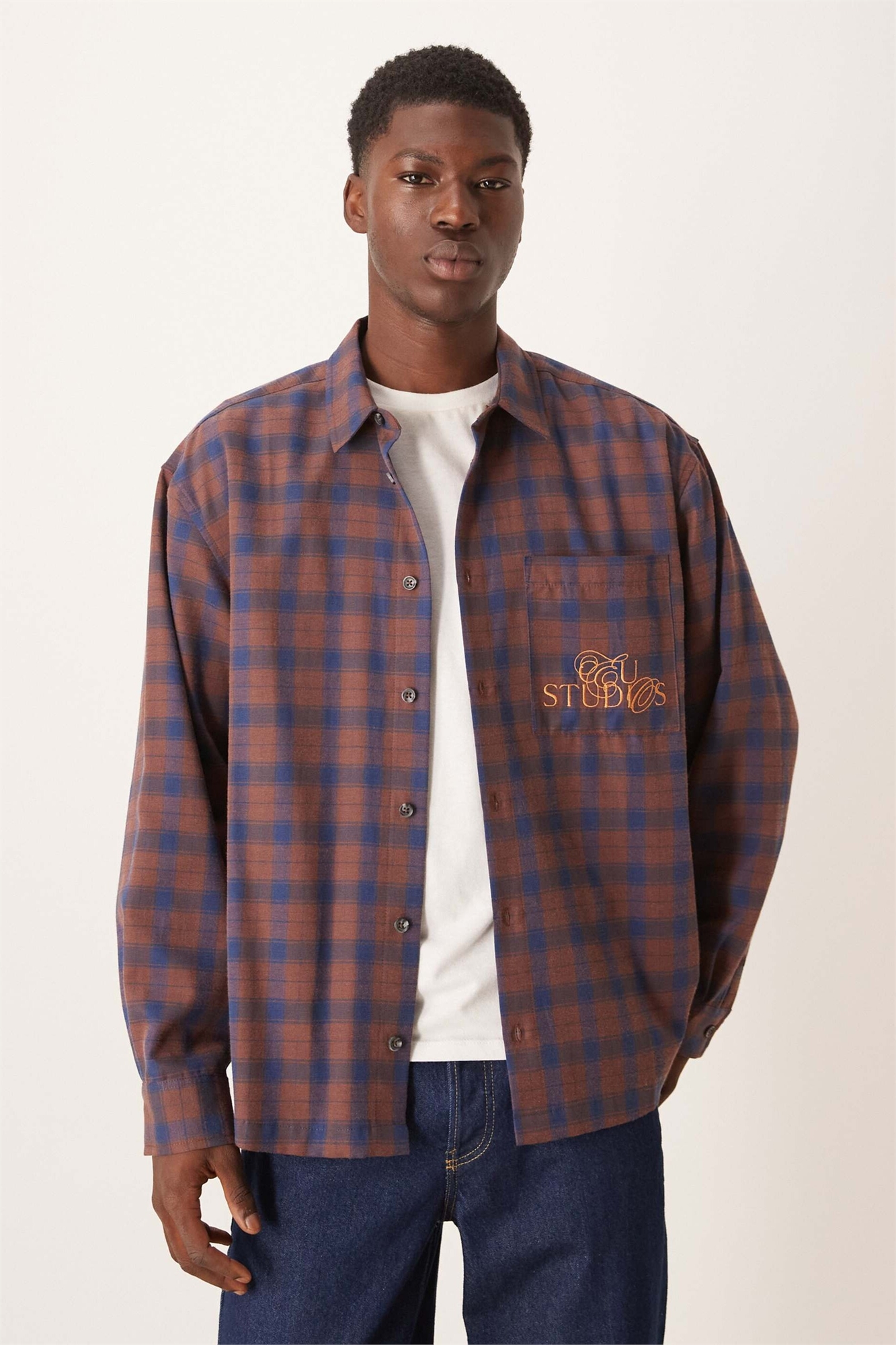 Рубашка в клетку свободного кроя с вышивкой на груди