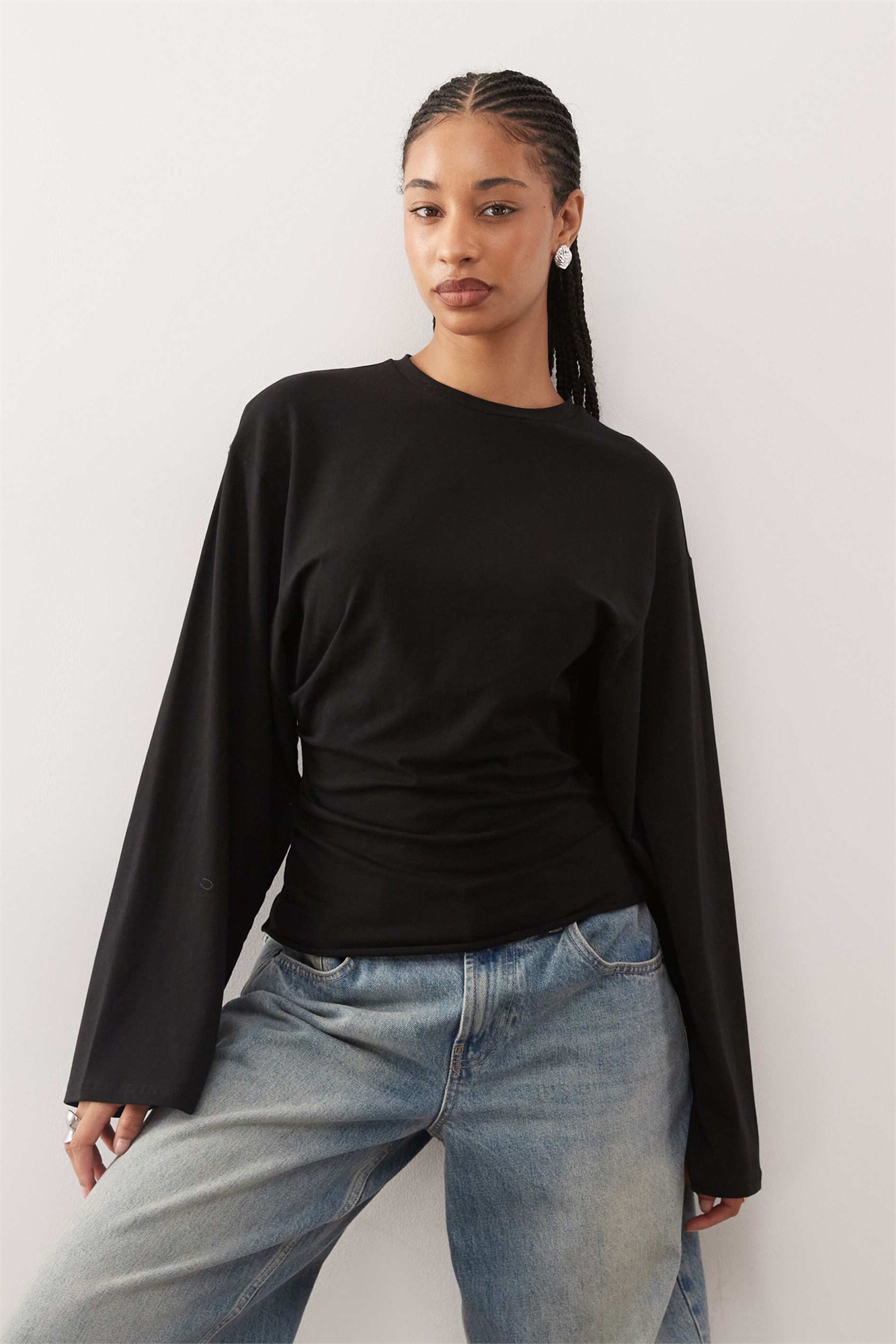 Футболка с зауженной талией и длинными рукавами