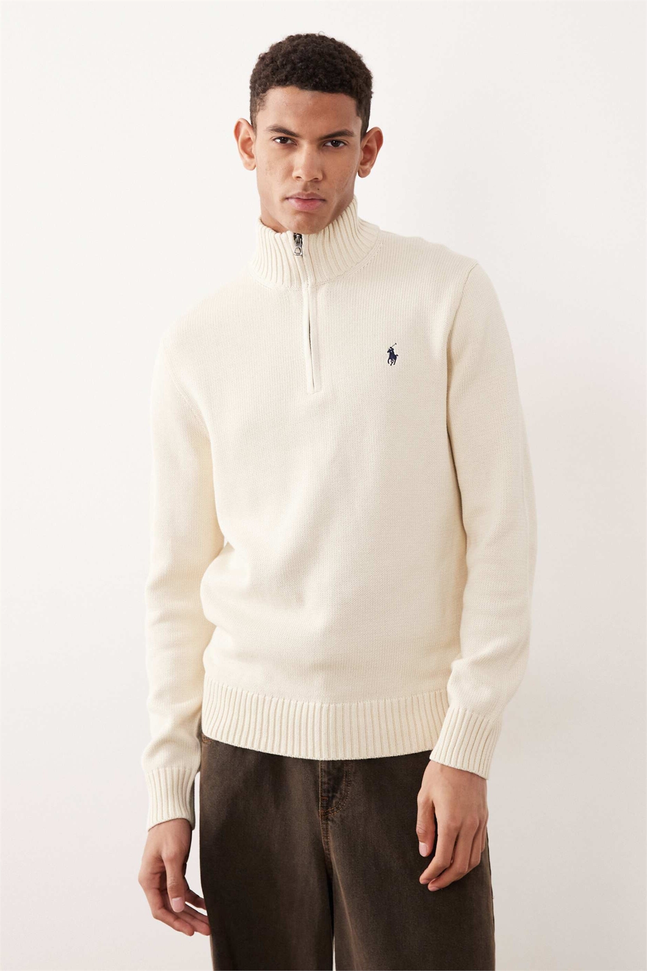 Свитшот из плотного хлопкового трикотажа с логотипом в виде значка и полузастежкой-молнией