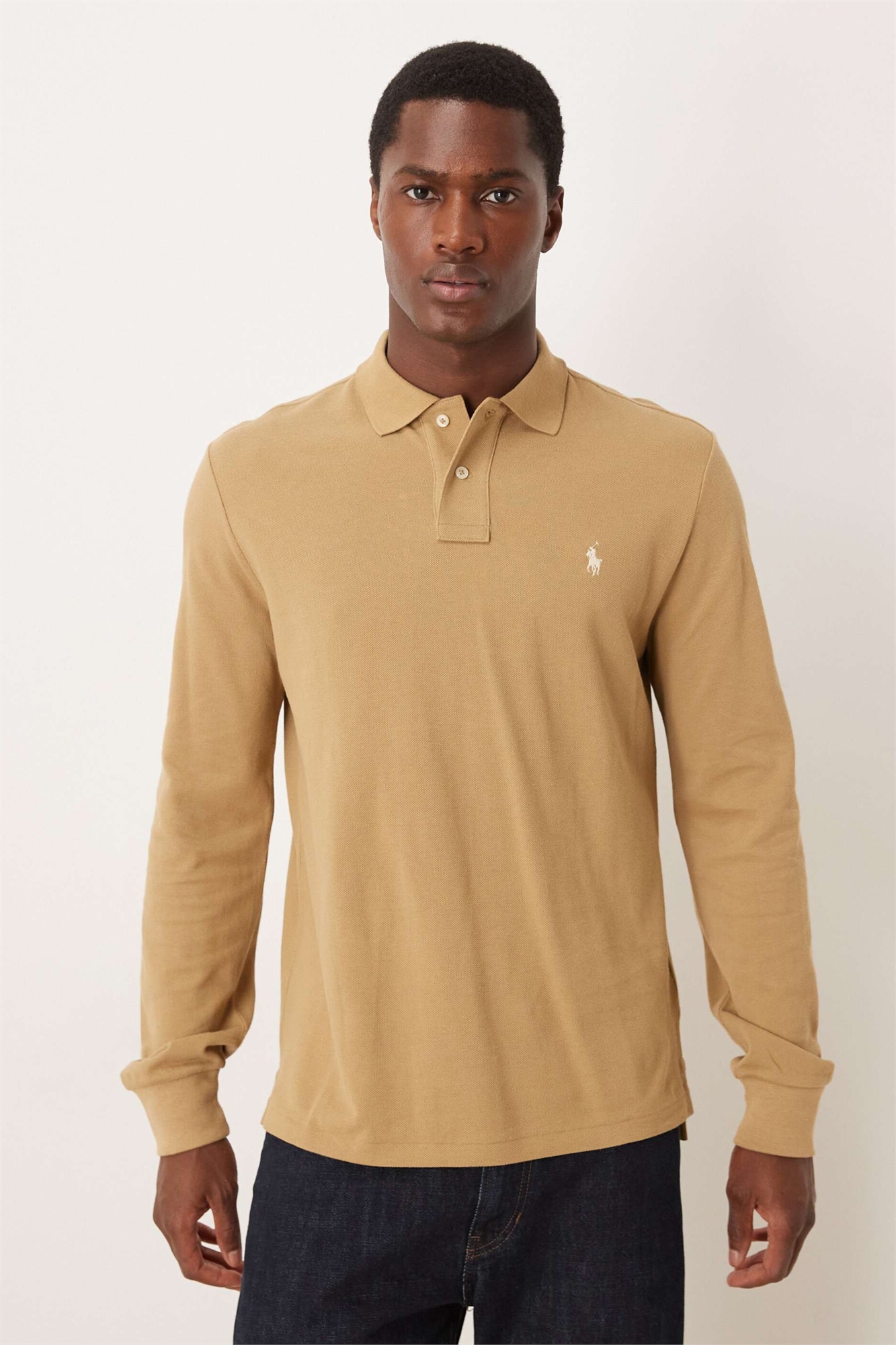 Поло с длинным рукавом из пике с логотипом в виде значка, индивидуальный крой
