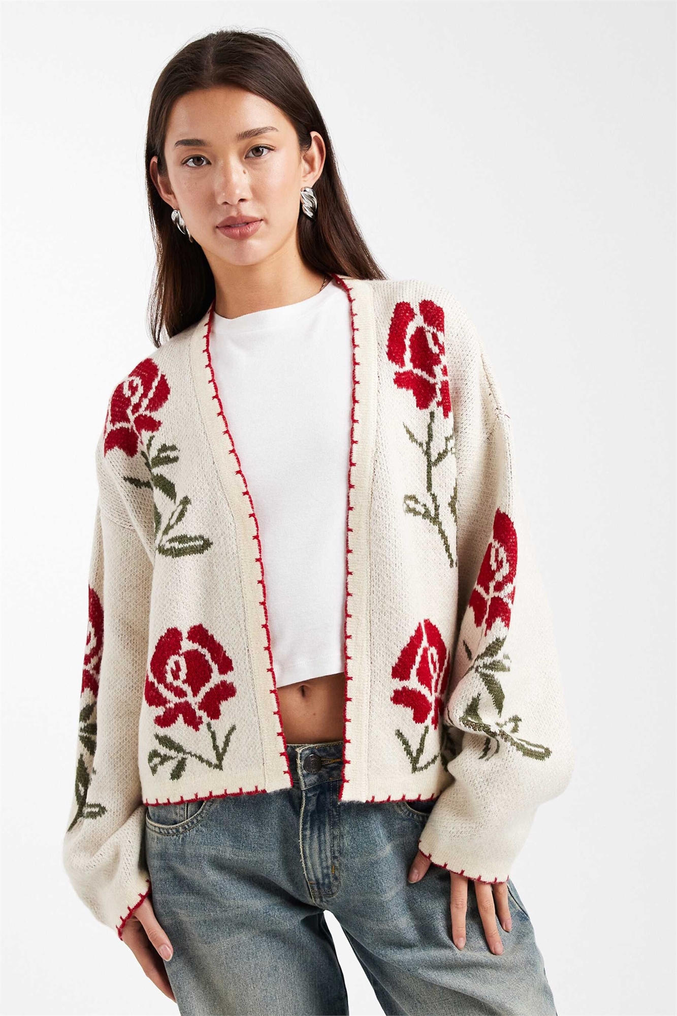Кардиган с цветочным узором, выполненным стежком «одеяло»