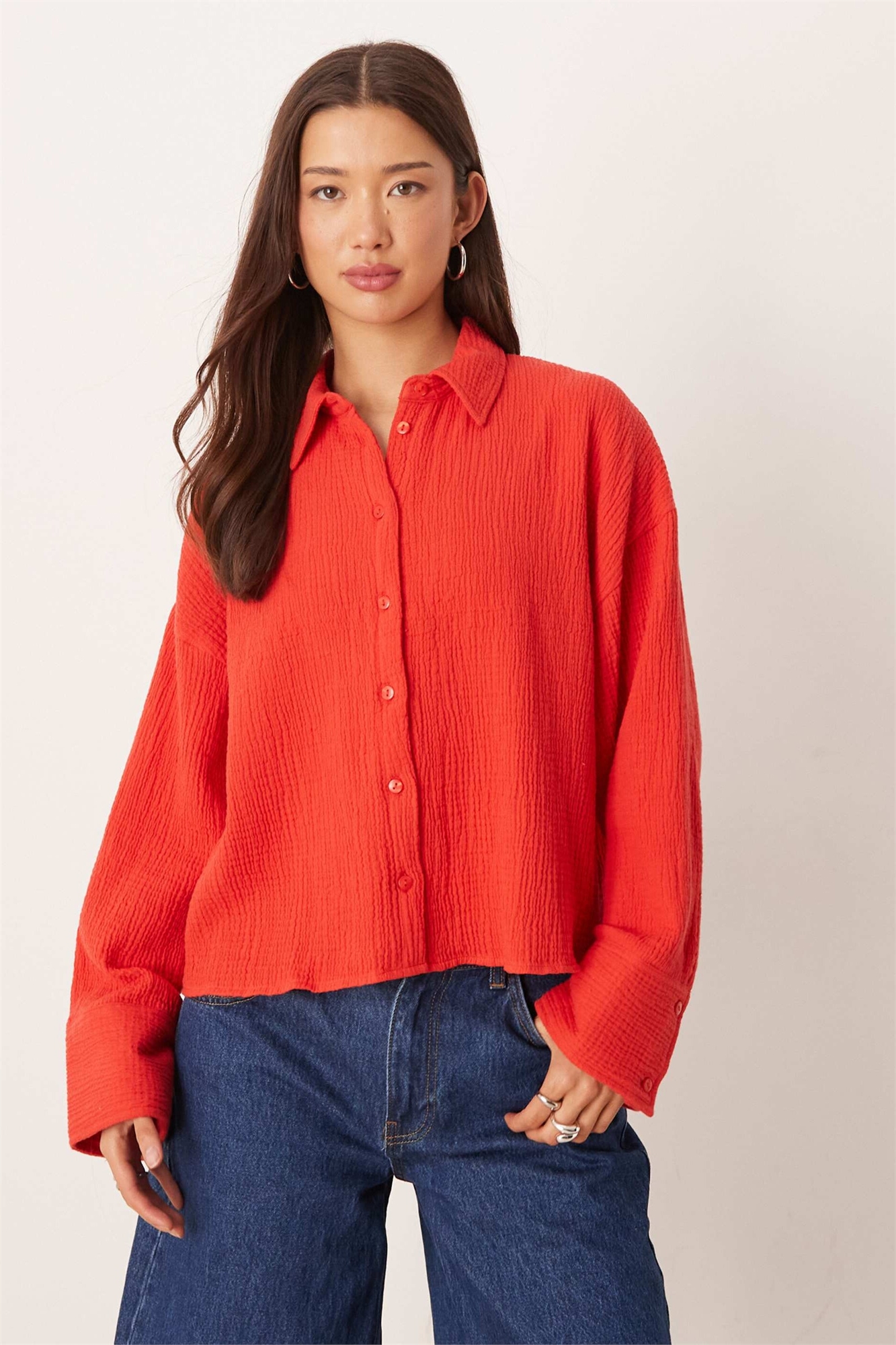 Рубашка из хлопчатобумажной ткани с текстурной отделкой и укороченным кроем