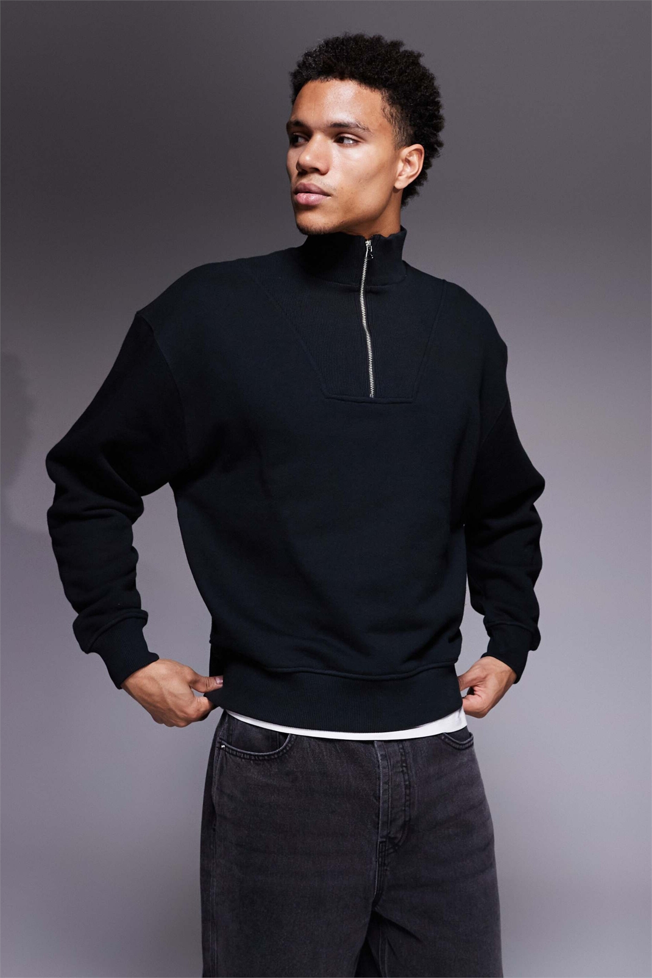 Свитшот «Rest Day» из хлопка плотностью 420 г/м² с широким воротником-воронкой и застежкой-молнией на 1/4 длины