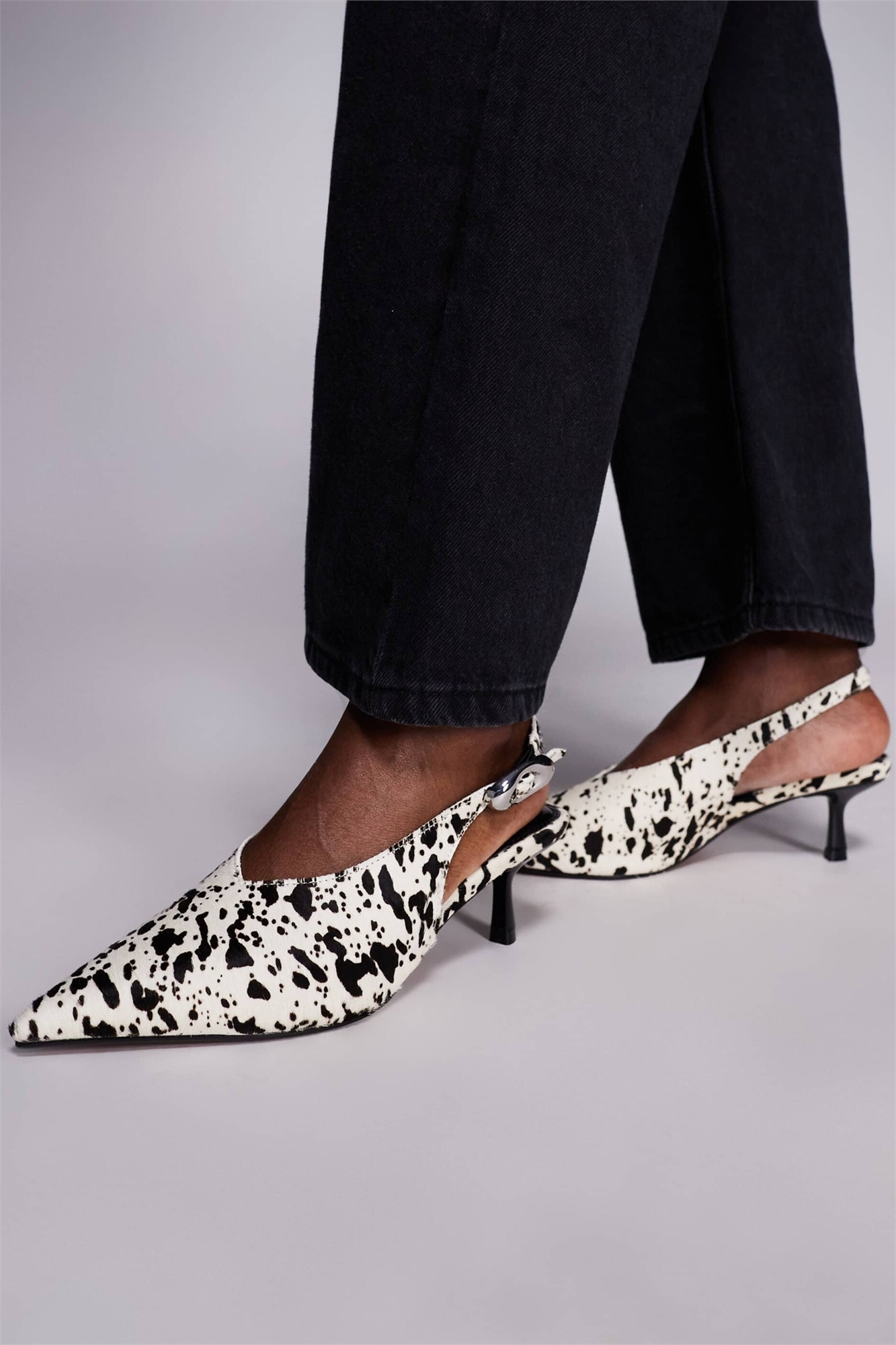 Туфли-лодочки с открытой пяткой и каблуком, с принтом «коровья шкура»