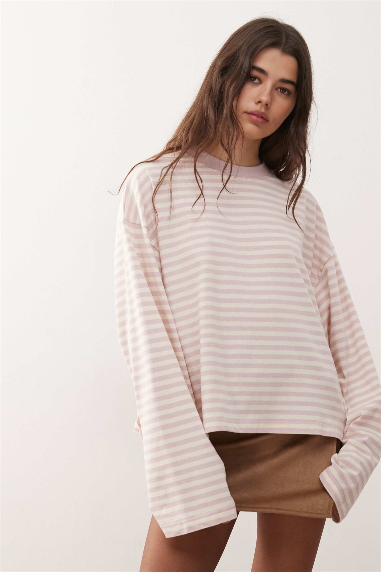 Футболка свободного кроя с круглым вырезом и длинными рукавами из смесовой ткани Bloom