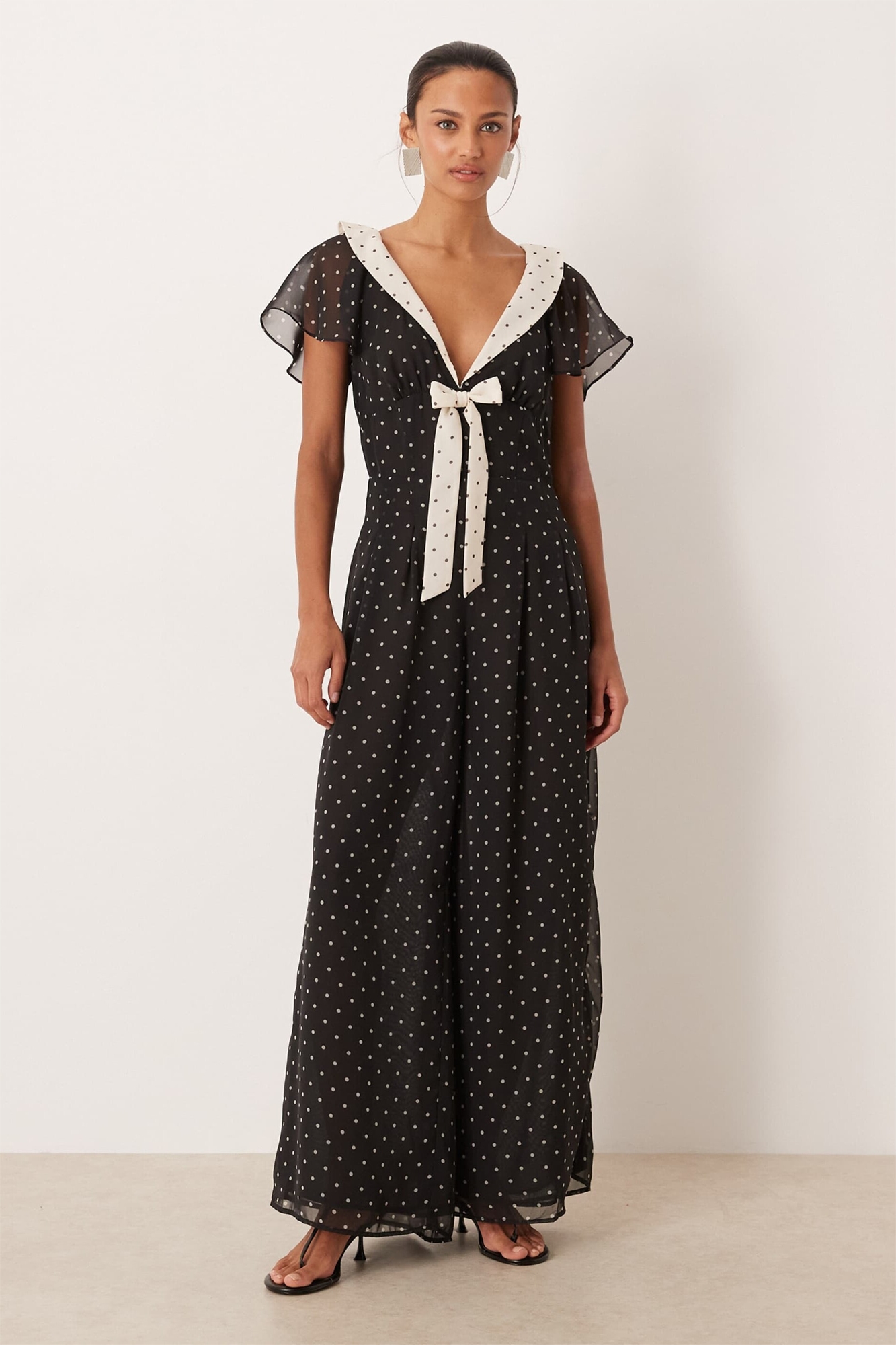 Комбинезон из шифона с V-образным вырезом и рукавами-крылышками