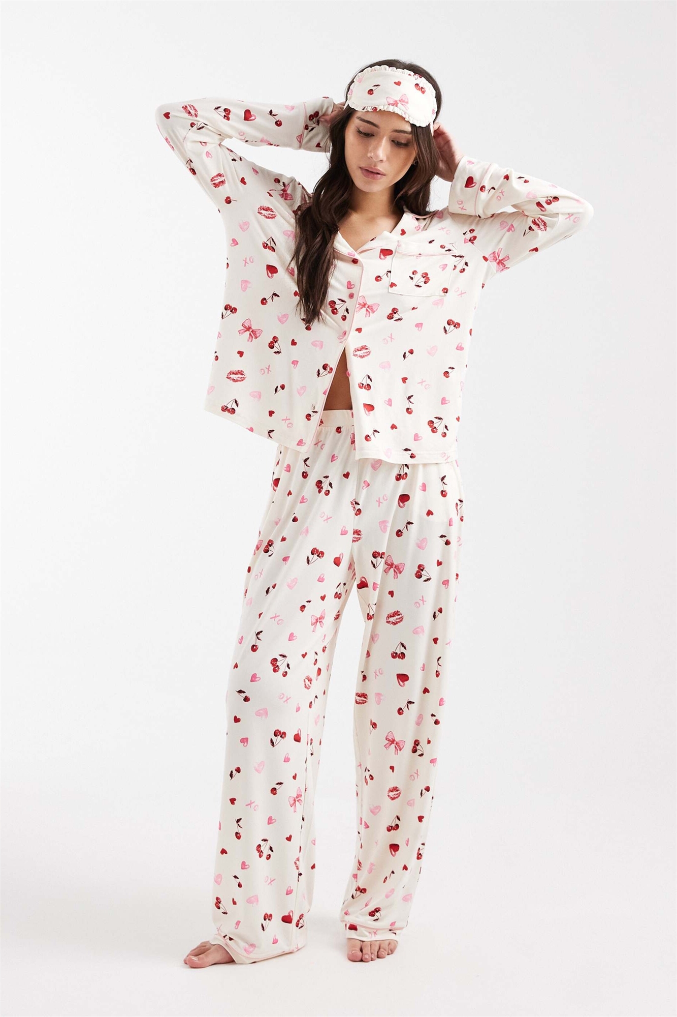 Комплект пижамы из сверхмягкой ткани с рисунком вишен и бантиков