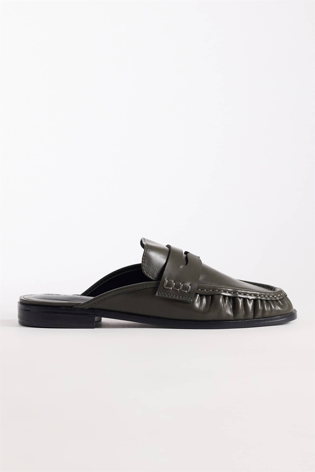 Мули-лоферы с рюшами из кожи мышиного цвета