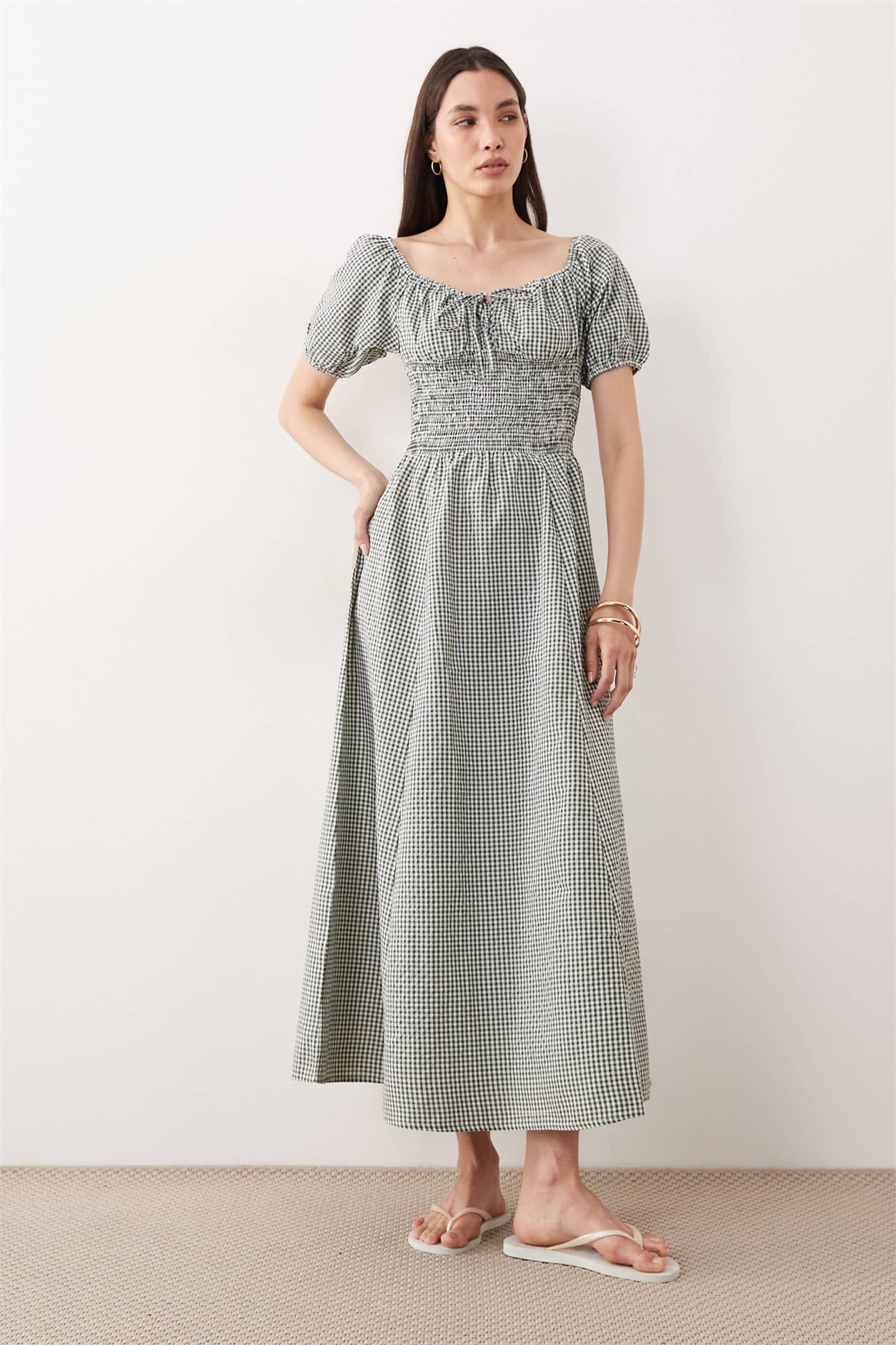Пляжное платье макси с рукавами-буф и завязками спереди от Esmee