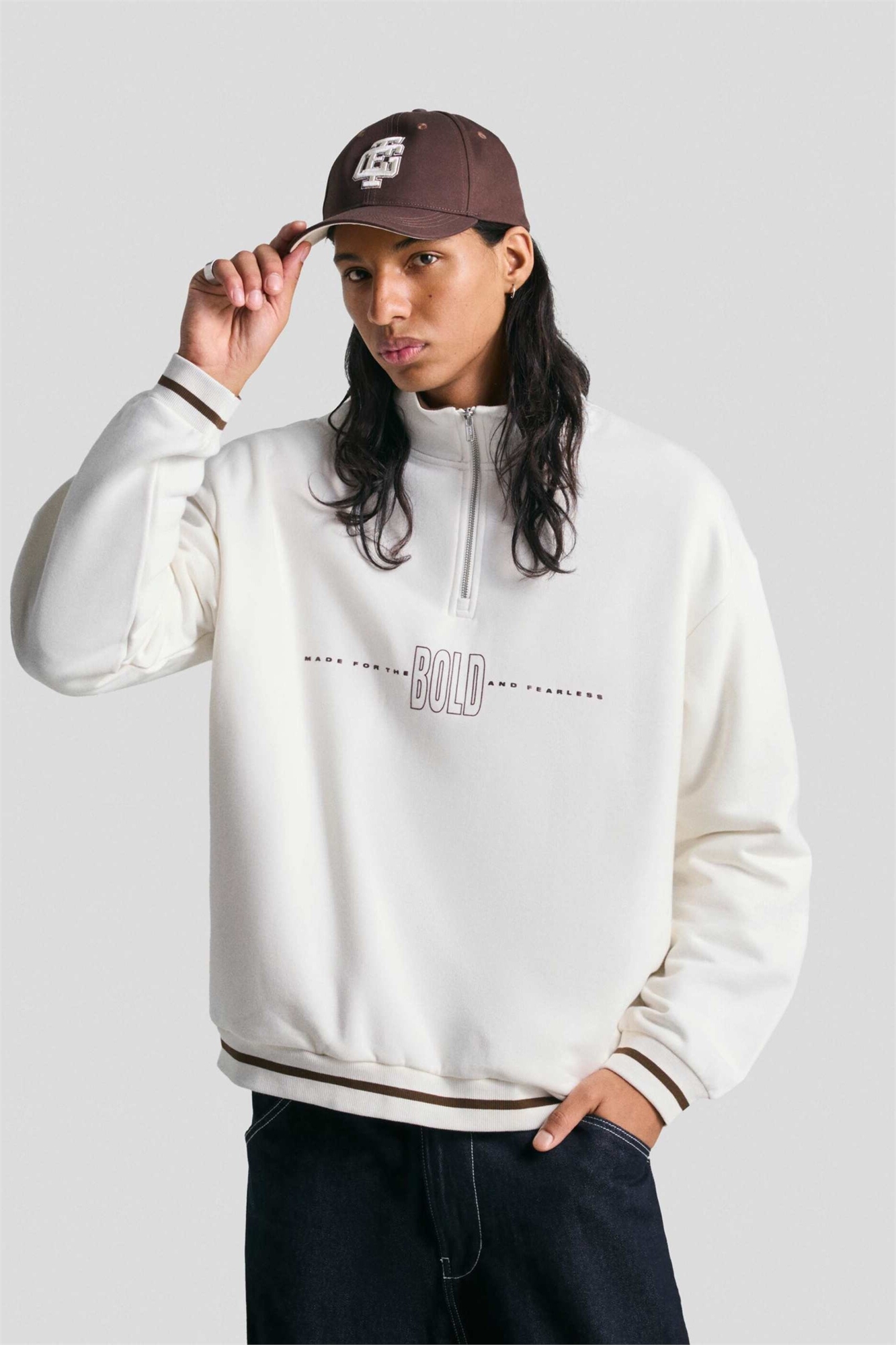 Свитшот с принтом и четвертью молнии