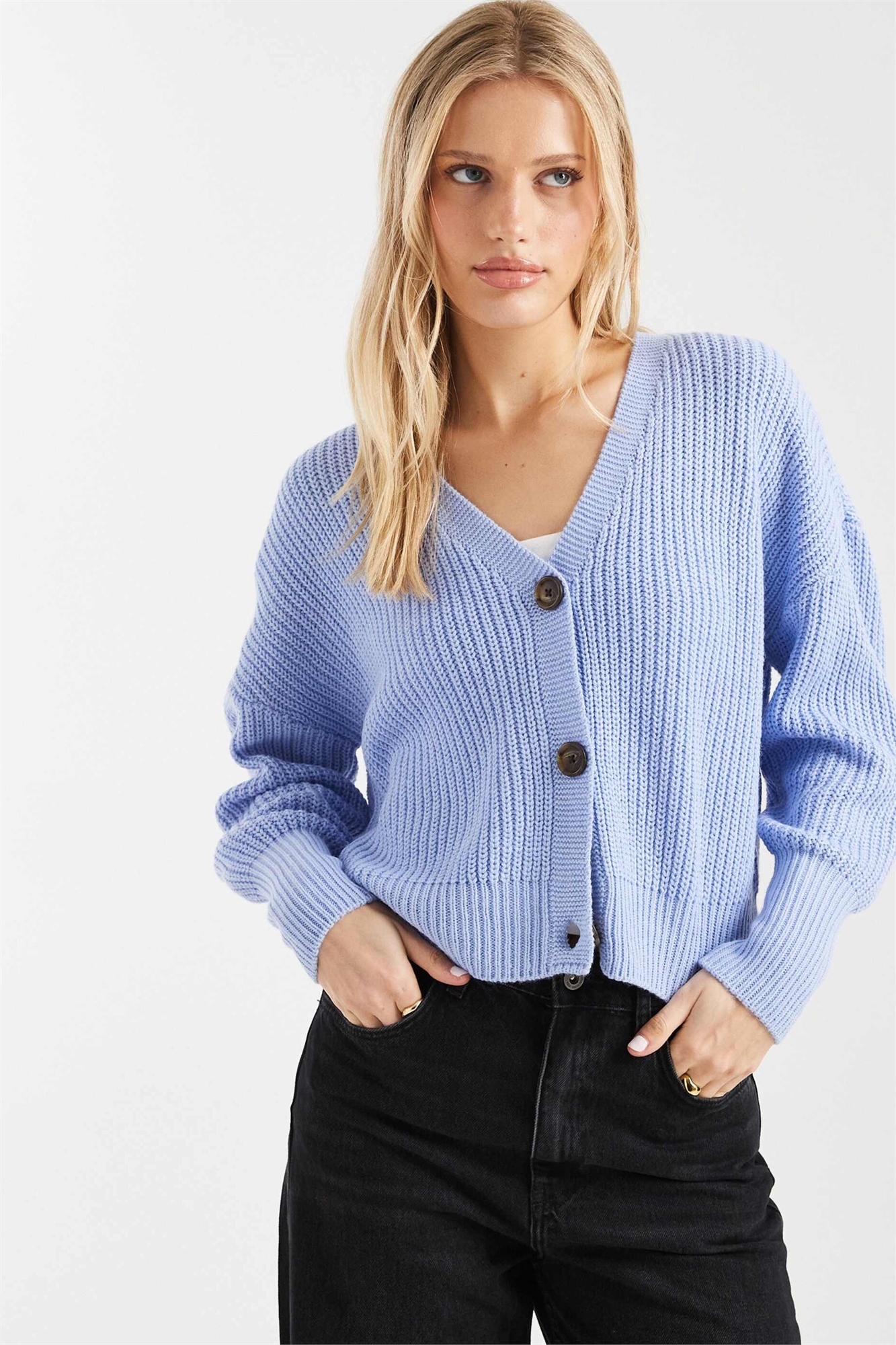 Кардиган на пуговицах с крупной ребристой вязкой