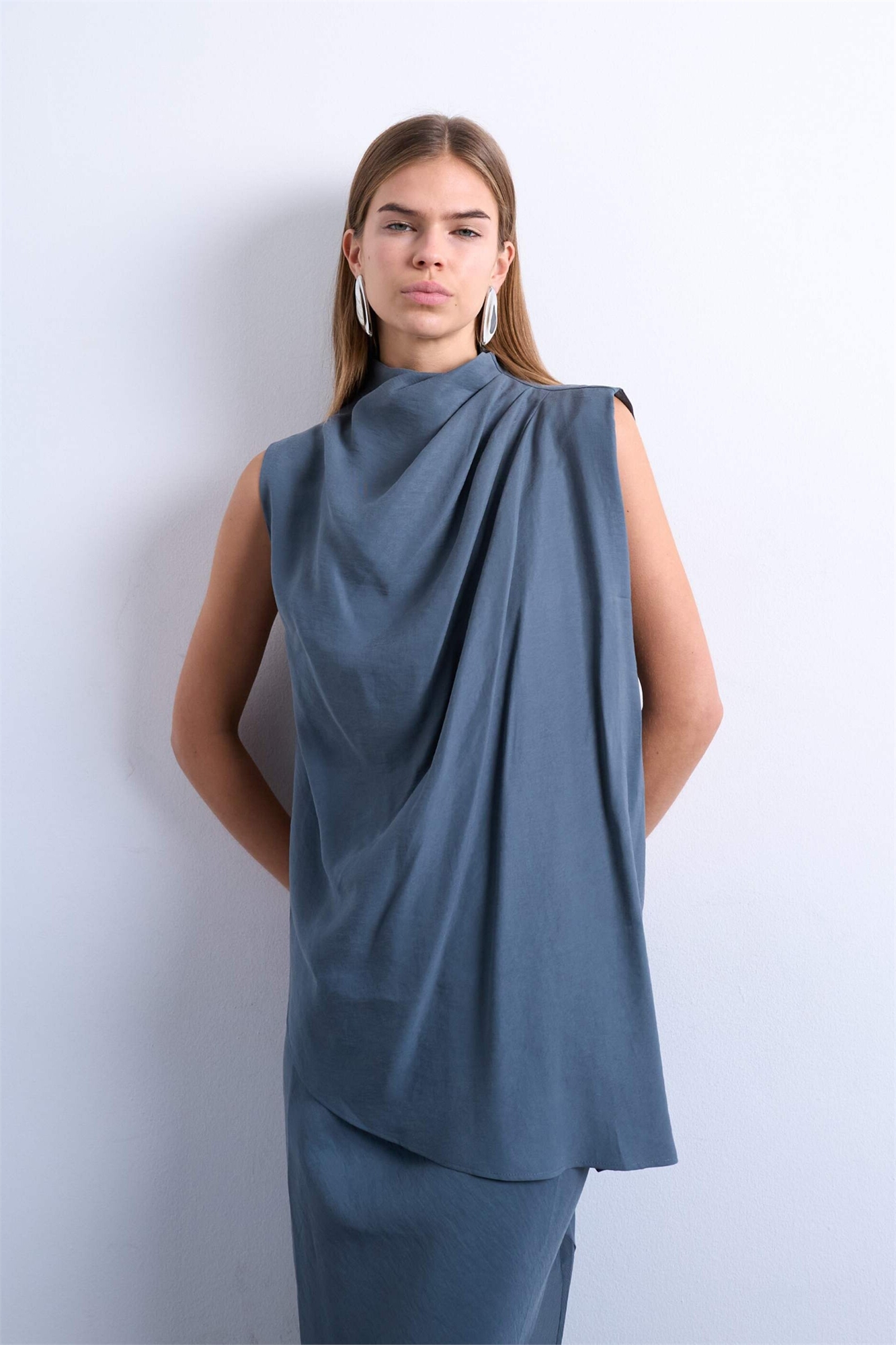 Туника с асимметричным подолом и драпировкой из ткани «купро»