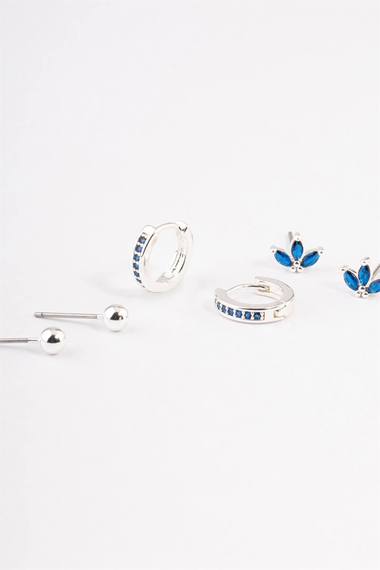 Набор серебряных сережек-гвоздиков и сережек-колец из латуни с кубическим цирконием в форме «маркиз» в разноцветном исполнении