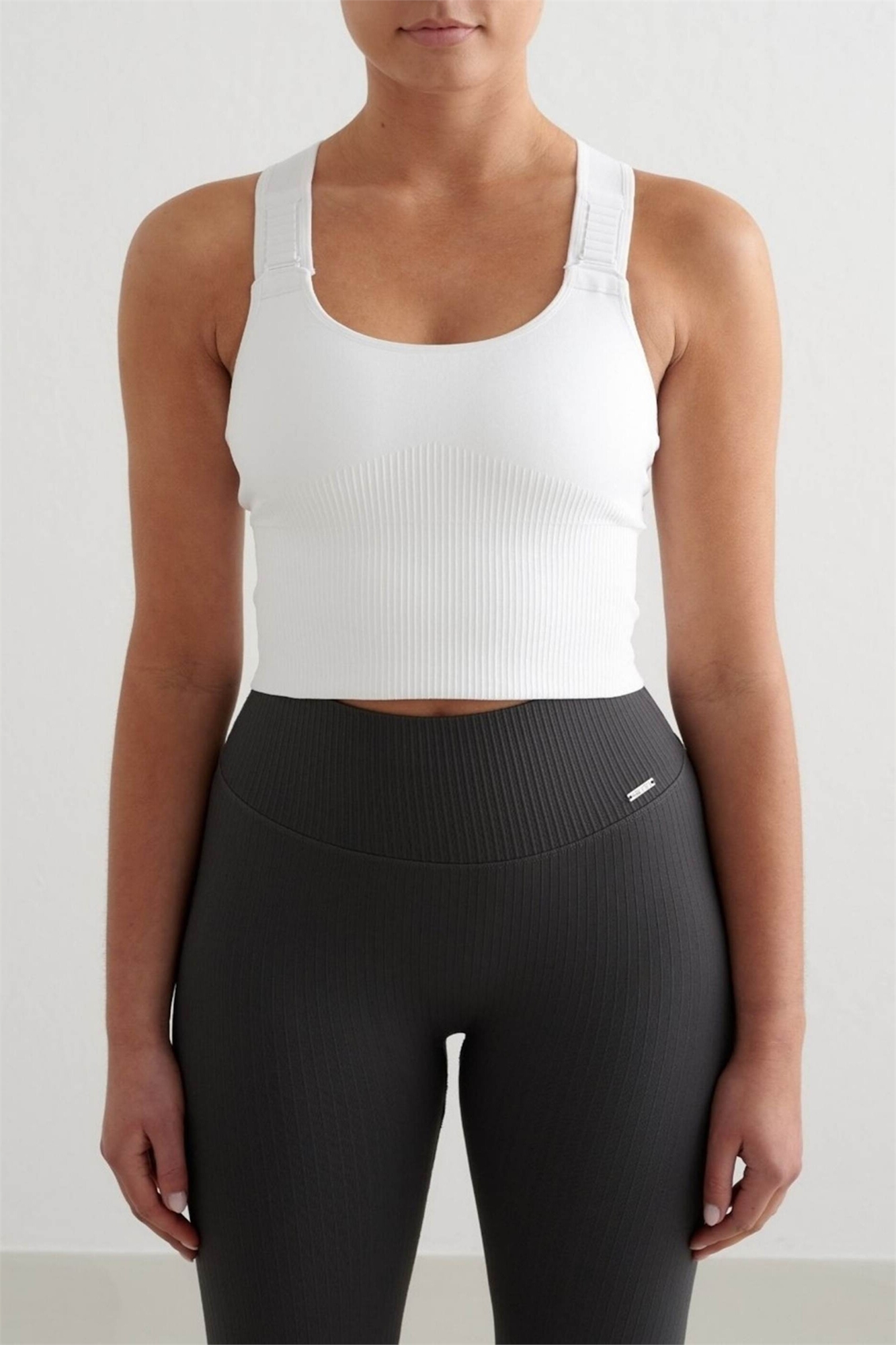Белый ребристый бесшовный бралетт с высокой степенью поддержки