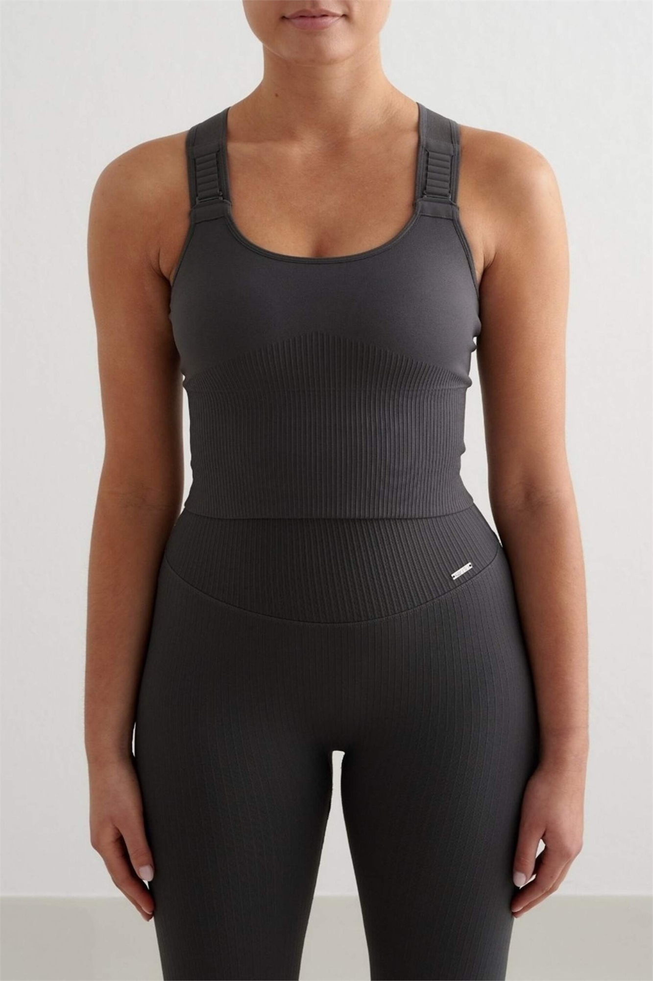 Бралетт серого цвета с ребристой текстурой, бесшовный, с высокой степенью поддержки