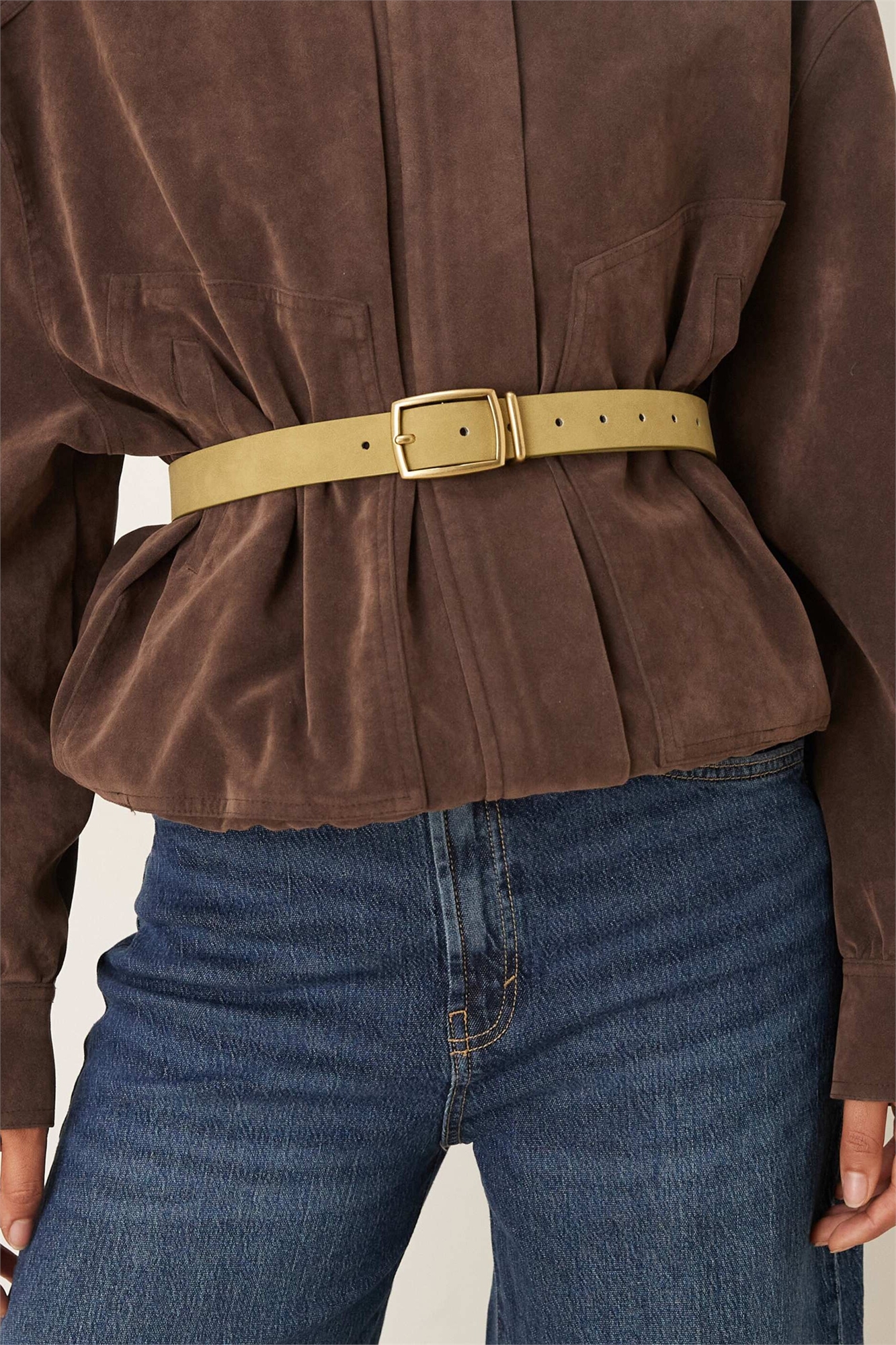 Пояс из искусственной замши с квадратной пряжкой на талии и бедрах