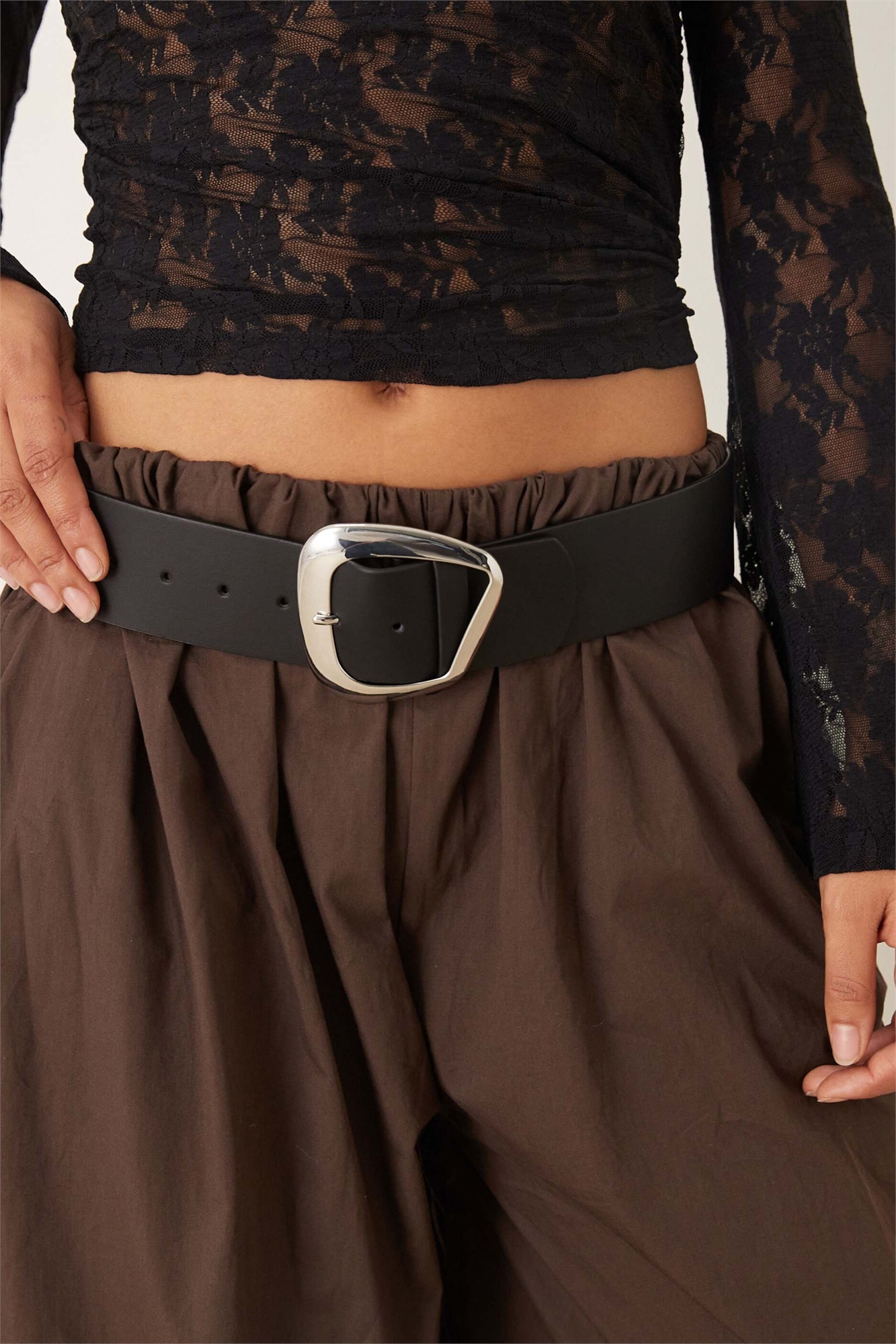 Широкий ремень с низкой посадкой и абстрактной квадратной серебряной пряжкой