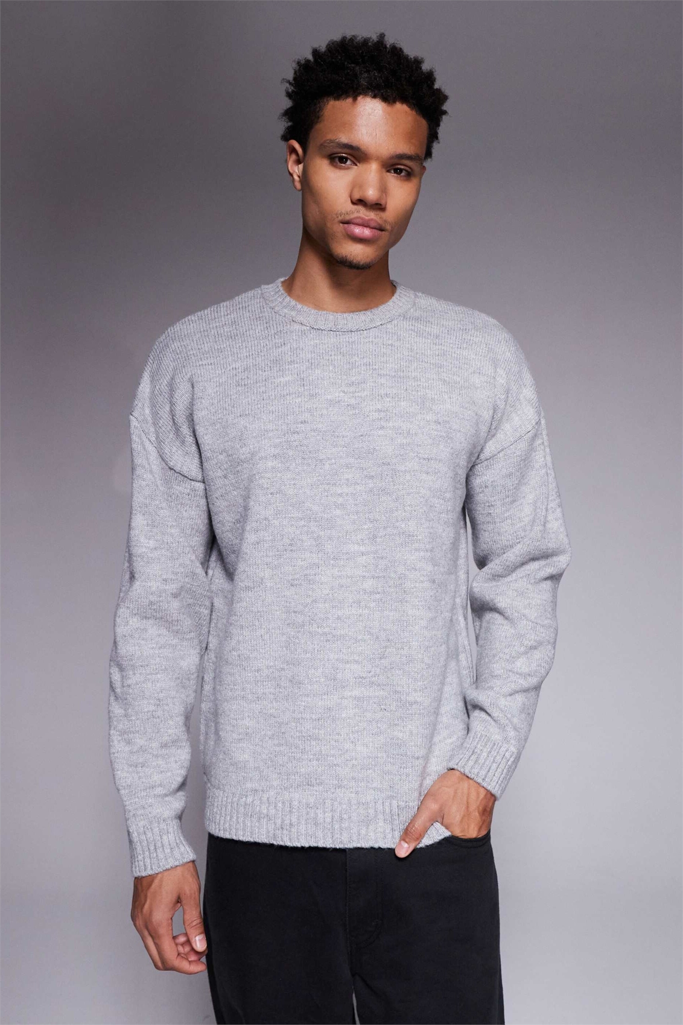 Свободный вязаный свитер с круглым вырезом