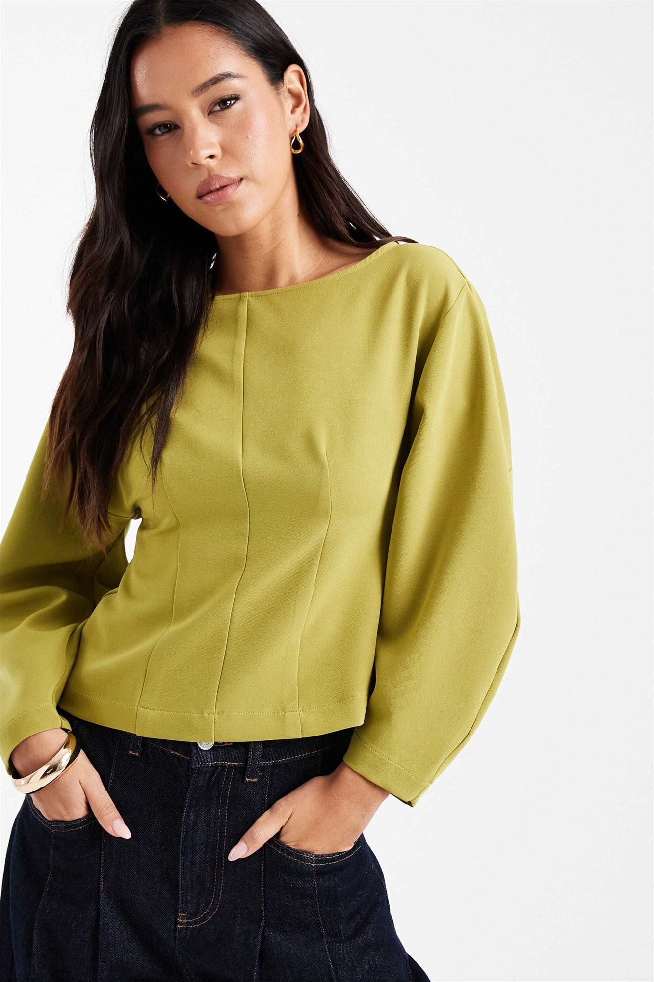 Топ с косым вырезом и длинными рукавами