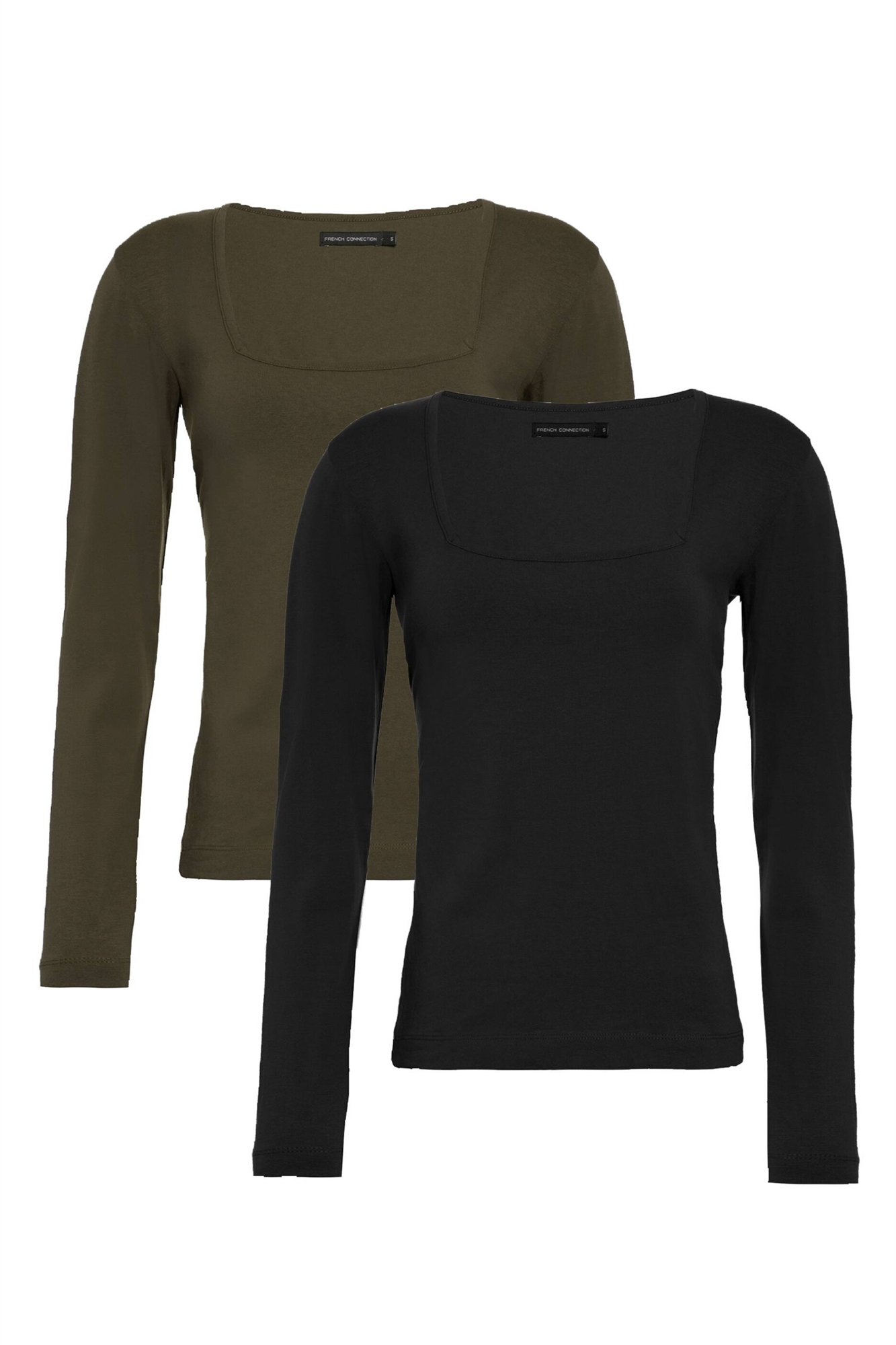 Набор из 2 хлопковых топов с квадратным вырезом и длинными рукавами