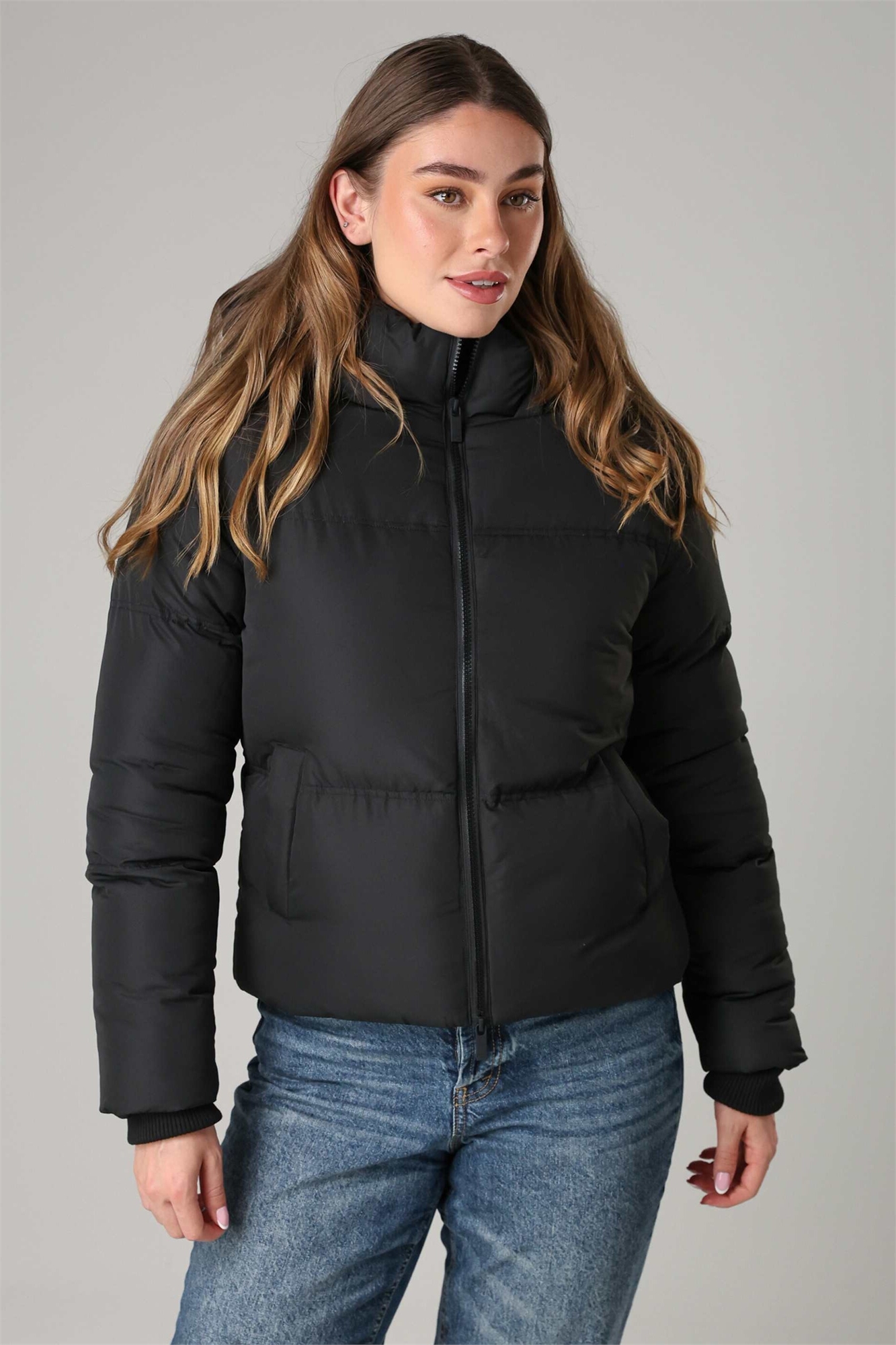 Короткая утепленная куртка-пуховик с капюшоном на молнии