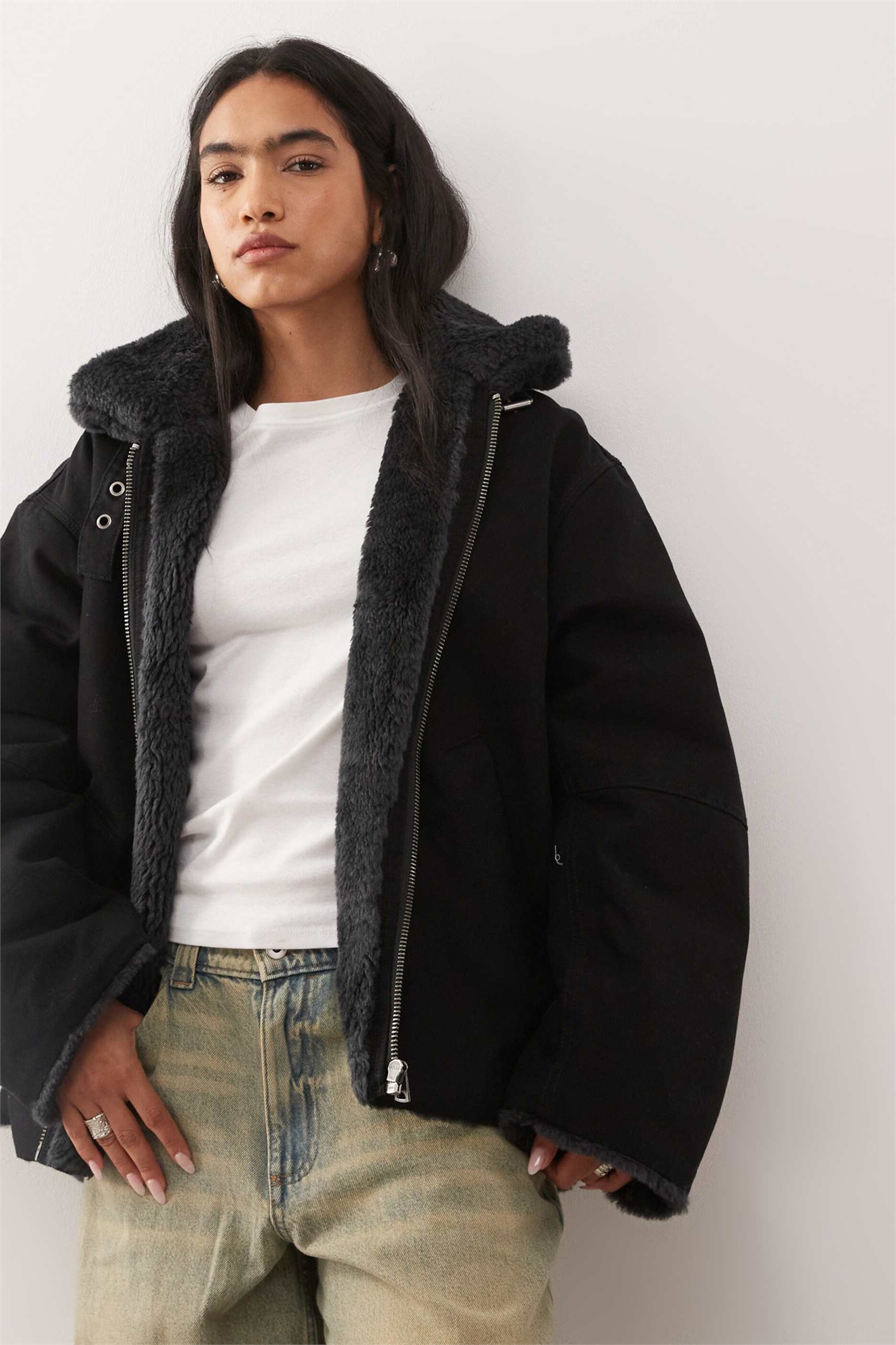 Куртка из канваса с воротником из искусственного меха