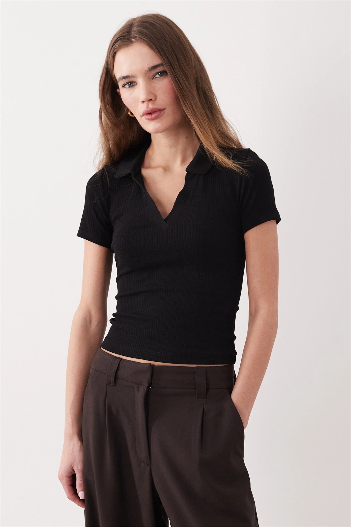 Приталенная поло с ребристой отделкой и пико-краем